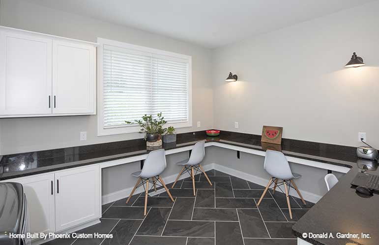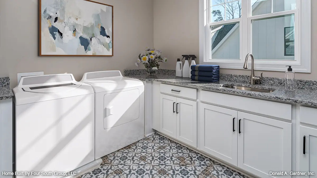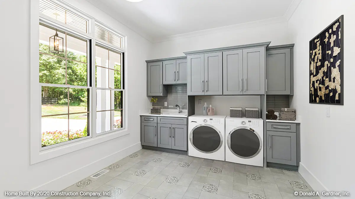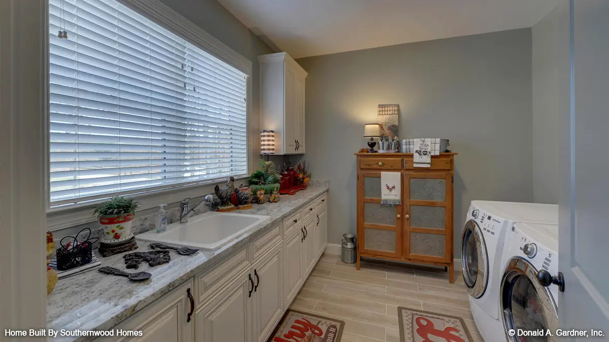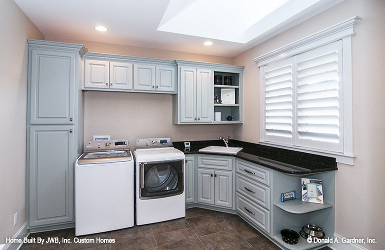 House plans with a family studio offer a multi-function room to meet the needs of busy families. These rooms are great for laundry, storage, and completing home projects. More than your basic laundry room, a family studio is a highly functional space in your home for storage and completing daily tasks. A family studio is over-sized in comparison to the typical laundry or utility room. Built-in cabinetry provides much needed storage and counter-tops offer workspace. Family studio home plans often have a laundry sink or a center island for even more counter space.