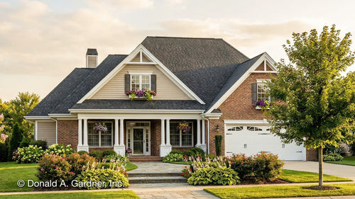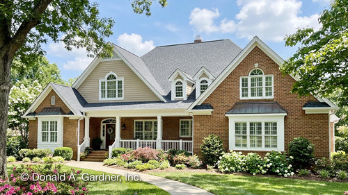 Front porch house plans make a lasting first impression and offer an opportunity to welcome guests and provide protection from the elements. Don Gardner Architects offers an extensive collection of house plans with front porches. Find designs with an elegant portico, a sprawling porch that extends the width of the home, or even a wrap around porch to enjoy nature or people watch. Just add a porch swing or a rocking chair for the perfect outdoor experience.