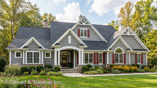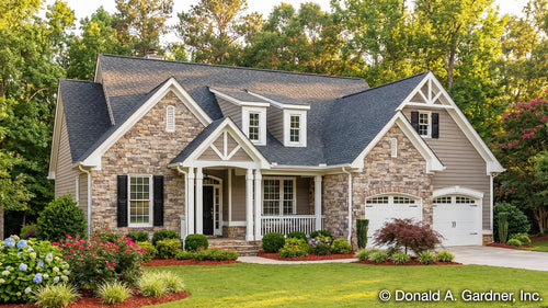 Rustic house plans offer a distinct aesthetic with cedar shakes, stone, and natural wood elements. Rustic home plans fit well on a mountain lot or a wooded retreat. If you are looking for a design that blends with nature, consider our rustic house plans. These designs are great for a vacation getaway or a permanent residence. With gabled roofs, front porches, nature-inspired color palettes, and large windows to enjoy a view, these rustic designs offer exactly what you need.