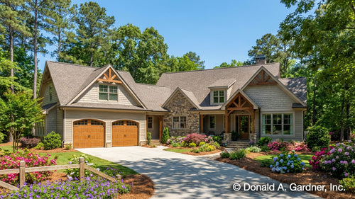 Rustic house plans offer a distinct aesthetic with cedar shakes, stone, and natural wood elements. Rustic home plans fit well on a mountain lot or a wooded retreat. If you are looking for a design that blends with nature, consider our rustic house plans. These designs are great for a vacation getaway or a permanent residence. With gabled roofs, front porches, nature-inspired color palettes, and large windows to enjoy a view, these rustic designs offer exactly what you need.