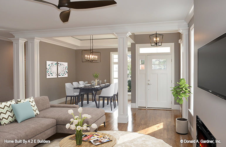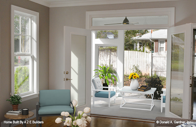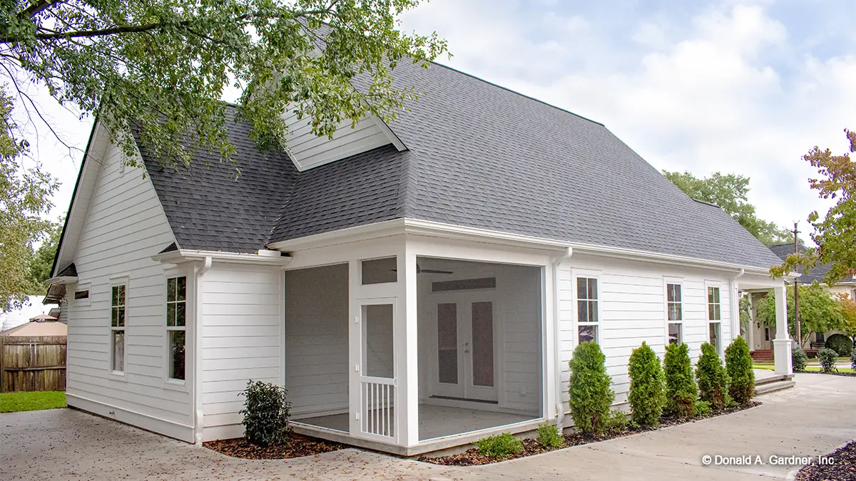 Perfect for narrow, long lots, this house plan lives larger than its square footage. The open floorplan provides room definition by using columns and a kitchen pass-thru in the common areas. A study/bedroom offers flexibility for growth, while each bedroom is positioned for privacy. A screened porch creates an outdoor haven for this house plan.