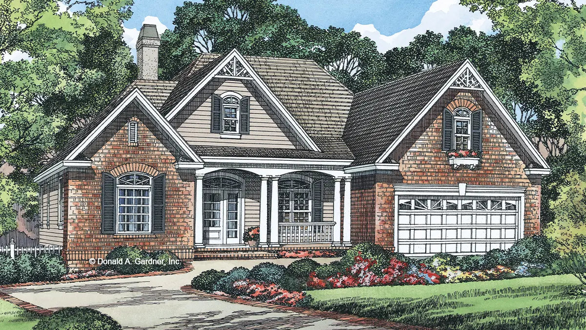 Brick and siding highlight the facade of this modest family home. Incorporating a step-saving design, this open floorplan is family-efficient. Tray ceilings crown the dining room, great room and master bedroom, while a secondary bedroom features a cathedral ceiling. French doors lead to the rear porch from both the great room and master suite. The flexible bonus room of this house plan accommodates changing needs.