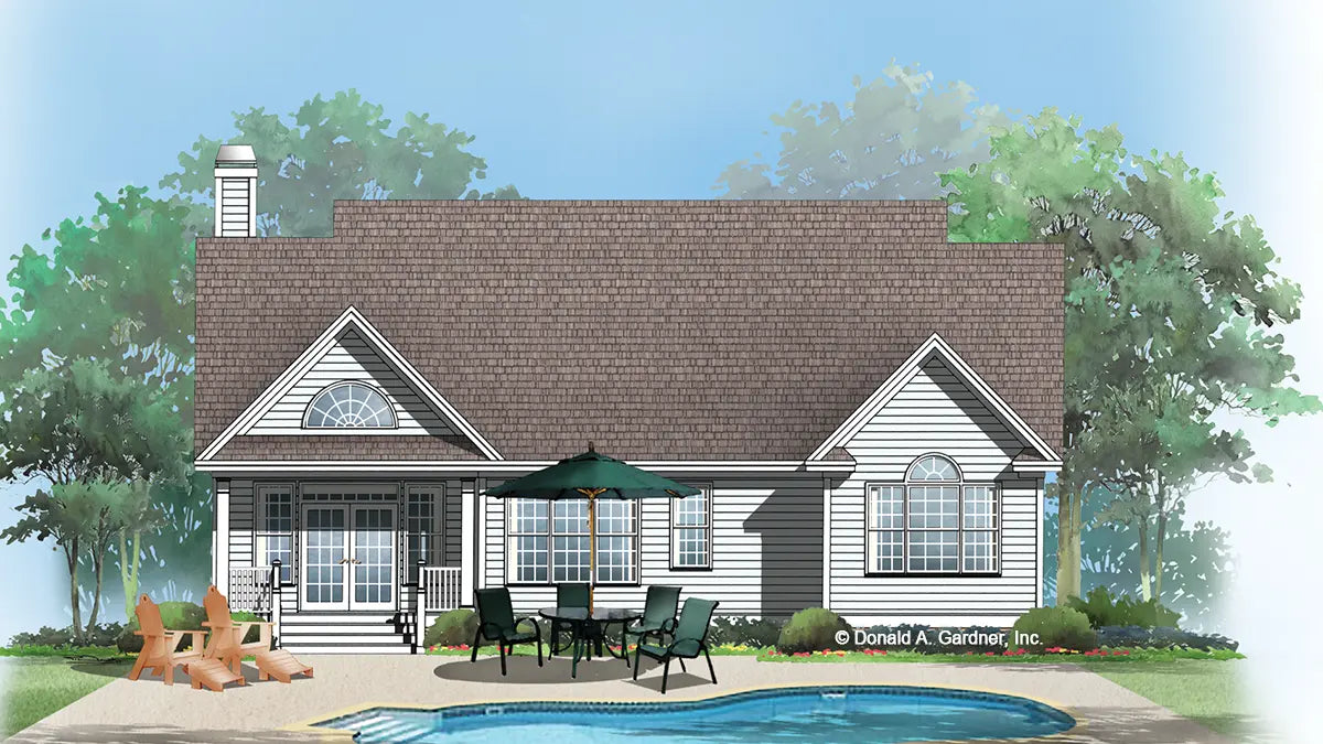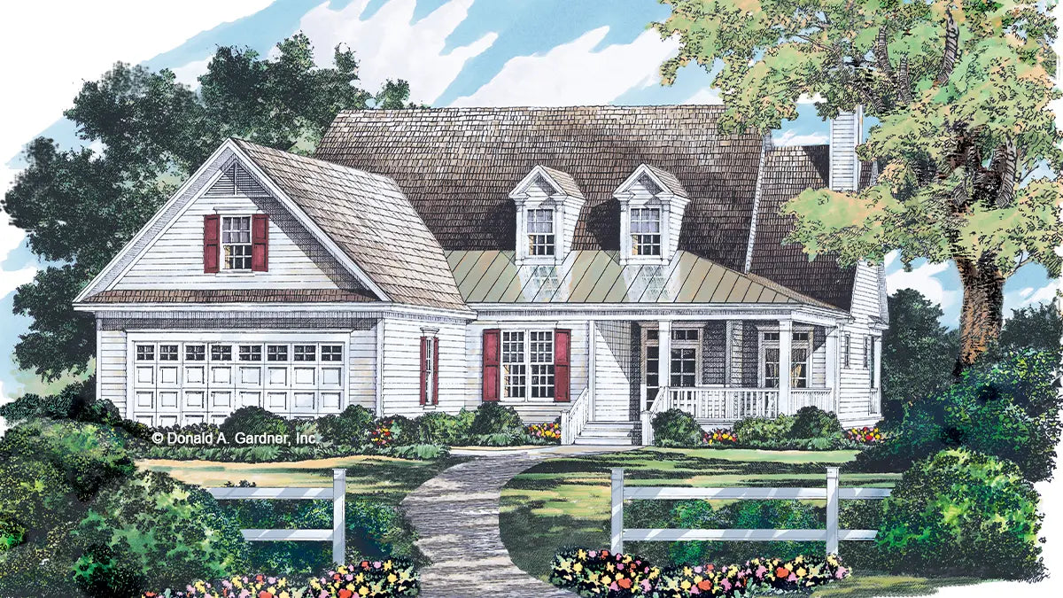 Twin dormers top a metal roof on the front porch, while a cathedral ceiling highlights the rear porch. Both porches feature French doors and provide space for relaxation and entertainment. While the fireplace can be enjoyed from the great room and kitchen, a walk-in pantry provides convenience. A column and tray ceiling define the dining room. Awaiting expansion purposes or anticipating the changing needs of a family, the bonus room lies off the master suite, offering space for a great home gym, office or bedroom. The master suite is complete with a spacious walk-in closet and pampering private bath. A secondary bedroom also includes a walk-in closet.