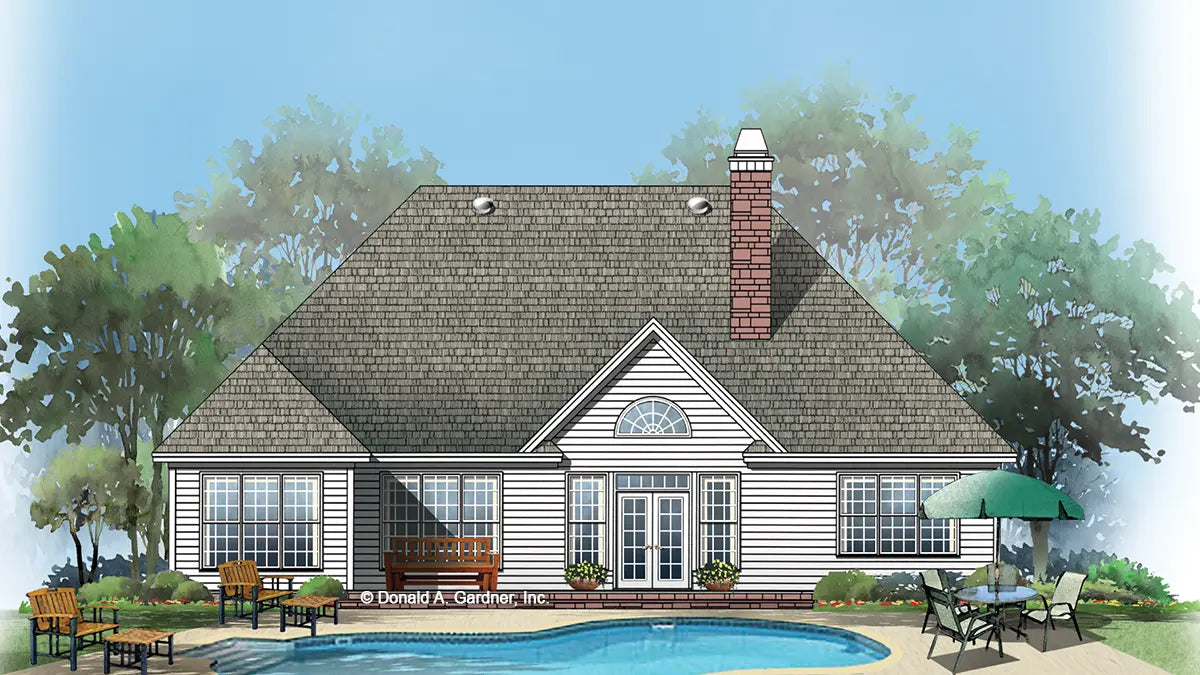 A courtyard garage entry and rectangular footprint lend efficiency to the traffic flow and construction cost in this stylish 3-bedroom Traditional. Double doors lead from the foyer into the study/bedroom, which features a second entrance near the bonus room stairs. Built-ins flank the fireplace, while columns and a tray ceiling define the dining room.