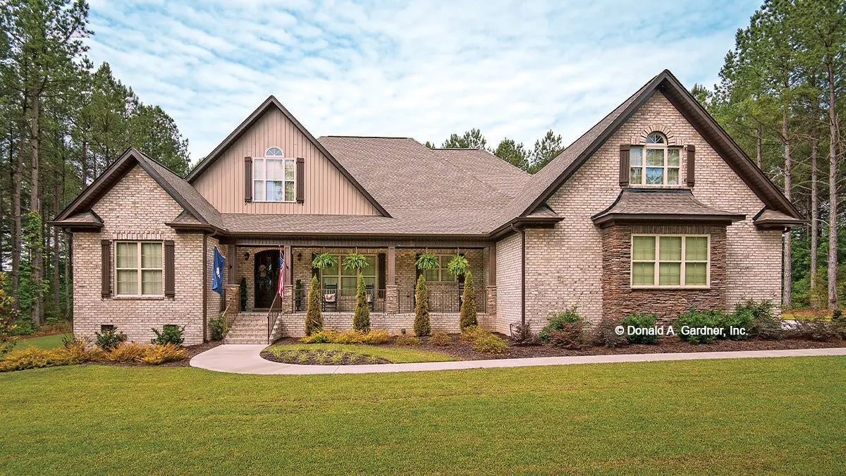 For families that want a large square-footage with the convenience of one floor, this house plan encompasses all that is luxury one-story living. The massive utility area provides room for more than just washing clothes, while the screen porch with cathedral ceiling adds nice architectural detail. Growing families can transform the 498 sq. ft. bonus room into additional living room space or a playroom for the kids. The master suite was designed to pamper. Featuring a rear porch, the master bedroom includes an easy way to access Mother Nature. From the cathedral ceiling, his-and-her walk-in closets and spacious master bath, the suite promotes indulgence. The house plan offers a total of 4 bedrooms and 4.5 baths, to meet the needs of family and overnight guests. The open kitchen, breakfast and morning rooms become one giant open space. Cathedral ceilings and built-in shelves provide custom details in the morning room, while a fireplace and built-in cabinets accent the great room.