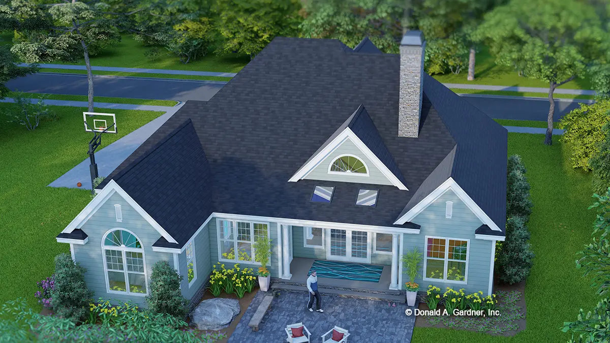 This traditional house plan features several gable peaks and a triplet of columns to create a stunning facade. The interior layout positions rooms for ultimate privacy and convenience. A vaulted ceiling and fireplace accent the great room that also overlooks the kitchen and rear porch. Skylights brighten the back porch, showcasing detail to even the outdoor living area. The kitchen's angled serving bar serves as a divider between the kitchen and great room. Tucked away in the rear of the home is the master suite. Two walk-in closets and an elegant master bath makeup the suite. For families that need extra storage space or constantly are tracking in dirt, the mudroom leads into the garage and utility room. Upstairs, a bedroom and full bath complete the house plan, while the bonus space awaits the homeowner's imagination.