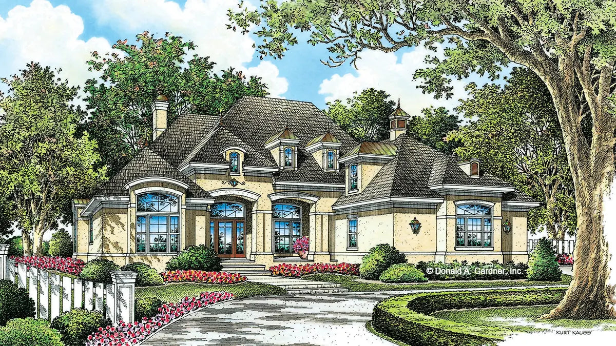European influence is ever present in this luxurious home plan. An attractive stucco facade combines with arches and several stunning windows for beautiful curb appeal. Through the front door of this house plan, the vaulted foyer gracefully leads into a formal dining room with ceiling treatment, as well as a more-than-generous great room. Adjacent to the great room is the chef-friendly kitchen with a large breakfast room nearby. A sprawling screen porch with cathedral ceiling and wet bar accesses the patio, which provides an enormous space to entertain. The master suite is positioned in a wing to itself and is filled with luxury. A bayed sitting area with shelves grants additional space to the bedroom in this floor plan, while a tray ceiling lends drama. The elegant master bath and dual walk-in closets complete the suite. Opposite the master suite, two spacious bedrooms each have walk-in closets and share a Jack-and-Jill bath.