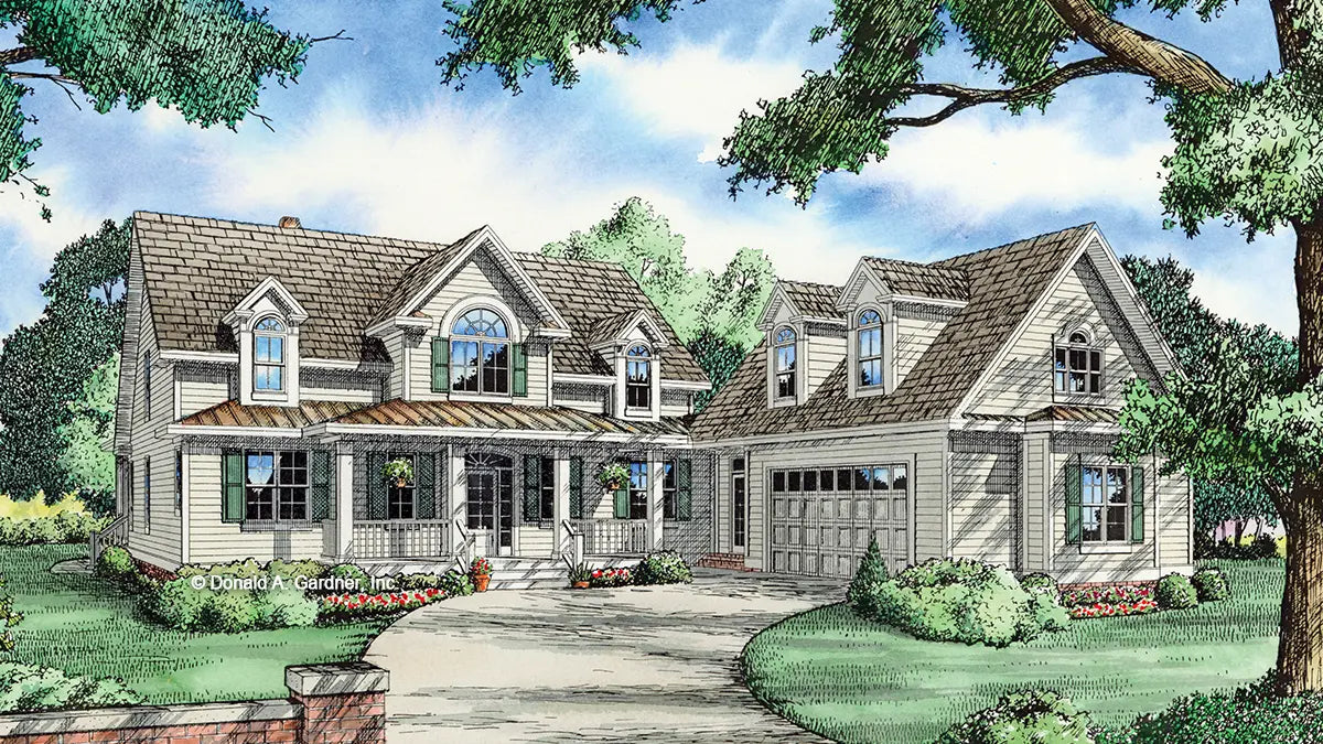 Two-Story Farmhouse with Courtyard Garage