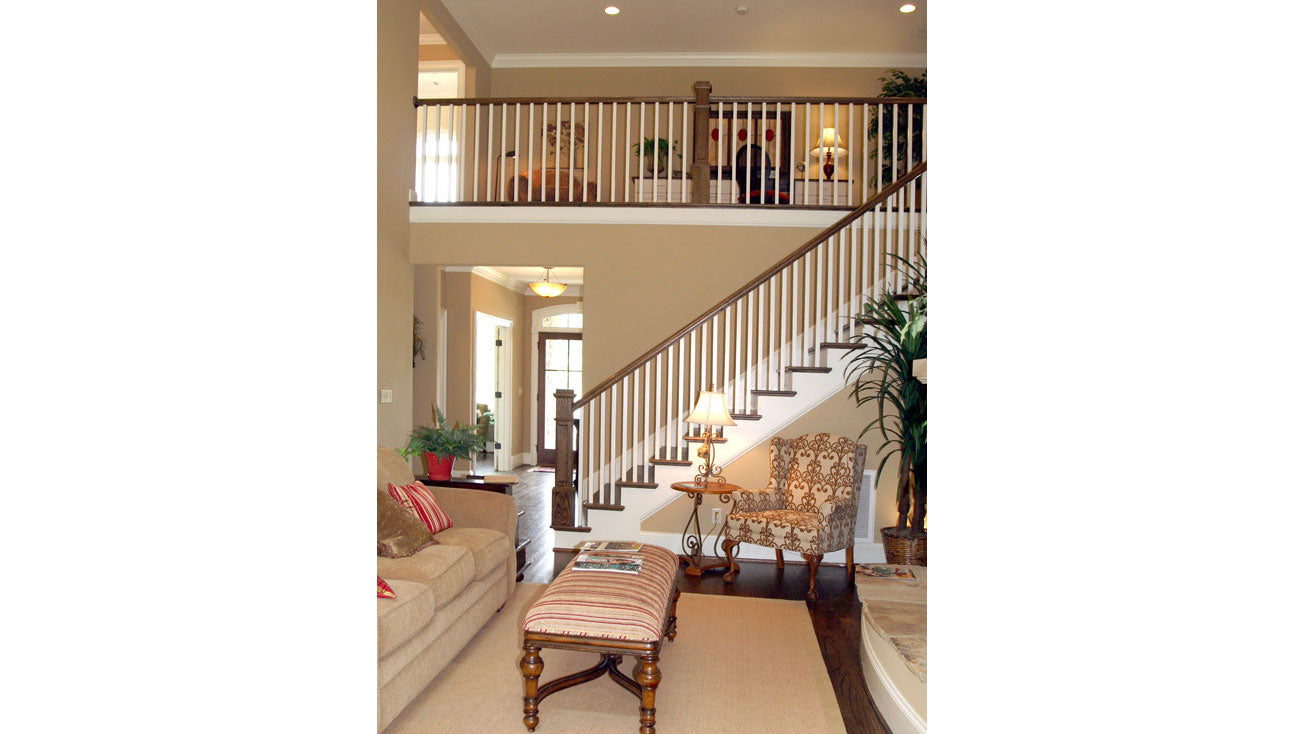 This stunning two-story home features an inviting mix of stone and shake, as well as an abundance of windows and an impressive front entry. The mixed materials, multiple gables and copper roofing give this home irresistible curb appeal. Inside, the home is just as lovely. For those who need lots of space, the Collier delivers, especially upstairs. The second level features two secondary bedrooms with walk-in closets, but also includes a spacious storage room, bonus room and generous loft/E-space, perfect for a computer nook. Next to the loft is a balcony that overlooks the great room and offers vertical volume to this room. Downstairs, the kitchen and dining room flow into one another and easily transition to the great room, while a fireplace and French doors accent the great room. The master suite is a true retreat, with plenty of windows and a lush master bath.