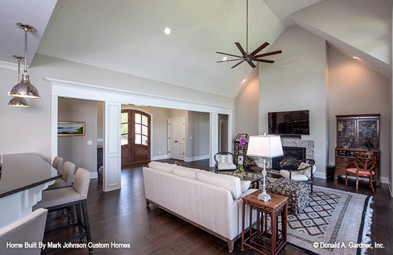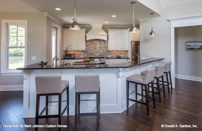 This is the first floor plan image for rustic house plan 1221 The Hartwell if the home is built over a basement