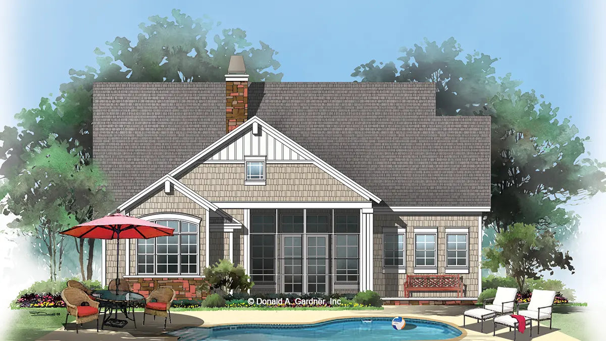 This inviting Craftsman bungalow's exterior is highlighted by cedar shakes and square tapered half-columns on stone piers. With custom-styled elements including a Jack & Jill bath, a mud room, laundry chute and a convenient e-space in the kitchen, this plan was designed with family living in mind. The two story foyer leads past the dining room with a coffered ceiling into the cozy great room with a vaulted ceiling. The breakfast nook is filled with natural light from surrounding windows and the kitchen offers more seating at the curved island. The master suite is conveniently located near the utility room and has access to the large screen porch. The window seat offers rear views and a cozy nook to read a book or relax. The bedroom/study on the main floor creates a flexible space for various uses including a guest suite, home office or den. Built-ins throughout give this home an authentic Craftsman feel and offer additional storage. Two bonus spaces on the second floor provide room for even more storage and expansion.