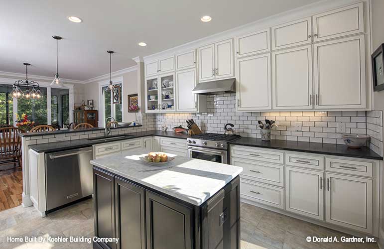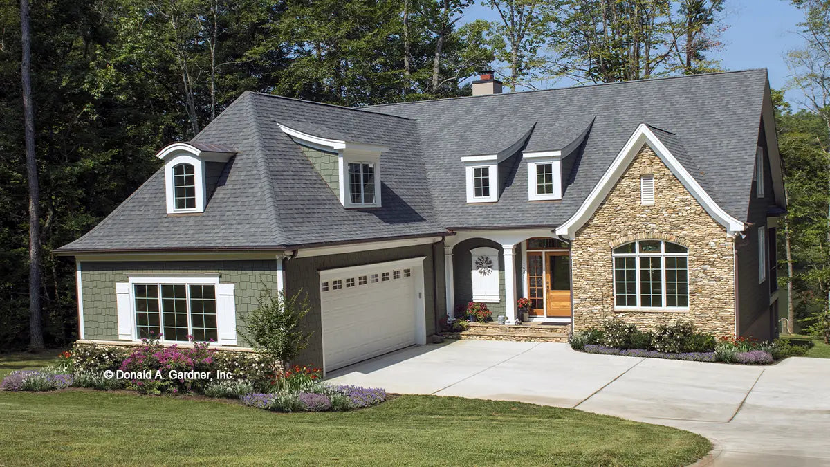 Multiple arches and shed dormers create a welcoming exterior for this updated cottage house plan. The dormers above give an open feel to the foyer and second floor landing, which in turn looks out over the two-story great room. A single dining space is defined by a sole column, while walls filled with windows offer exceptional views. A full master suite and over-sized utility room complete the main floor, while twin bedrooms and a large bonus room are found upstairs. This plan offers the popular courtyard style and also features a 412 sq. ft. bonus room that is not included in the total square footage. Outdoor living is fun on the screen porch with skylights. The conveniently located utility room is great for a busy family.
