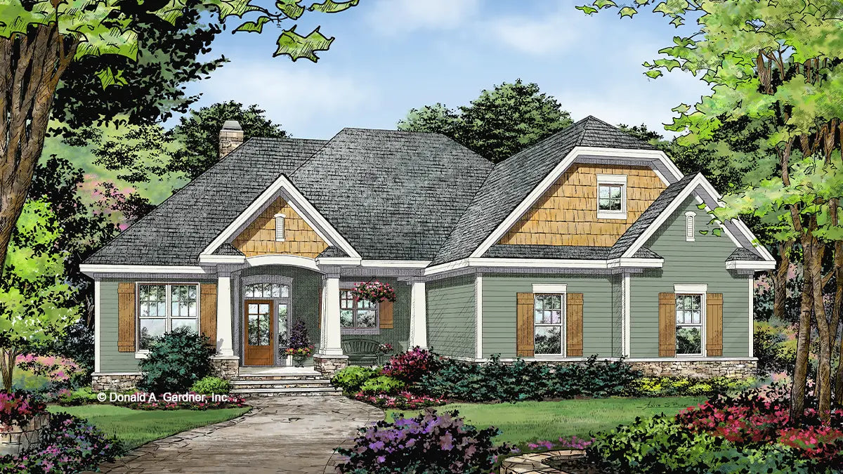 Desirable features are bountiful in this small footprint home plan. A cozy front porch opens to a foyer with an art niche and coat closet. The great room flows seamlessly into the dining room and they share a cathedral ceiling. An adjacent screened porch offers protection from the elements and an open porch features skylights for an abundance of natural light. A pantry is located within the kitchen and the nearby mud and utility rooms offer a private entry. A luxurious master suite features dual closets and vanities and two additional bedrooms share a bath and large storage closet in this home plan.