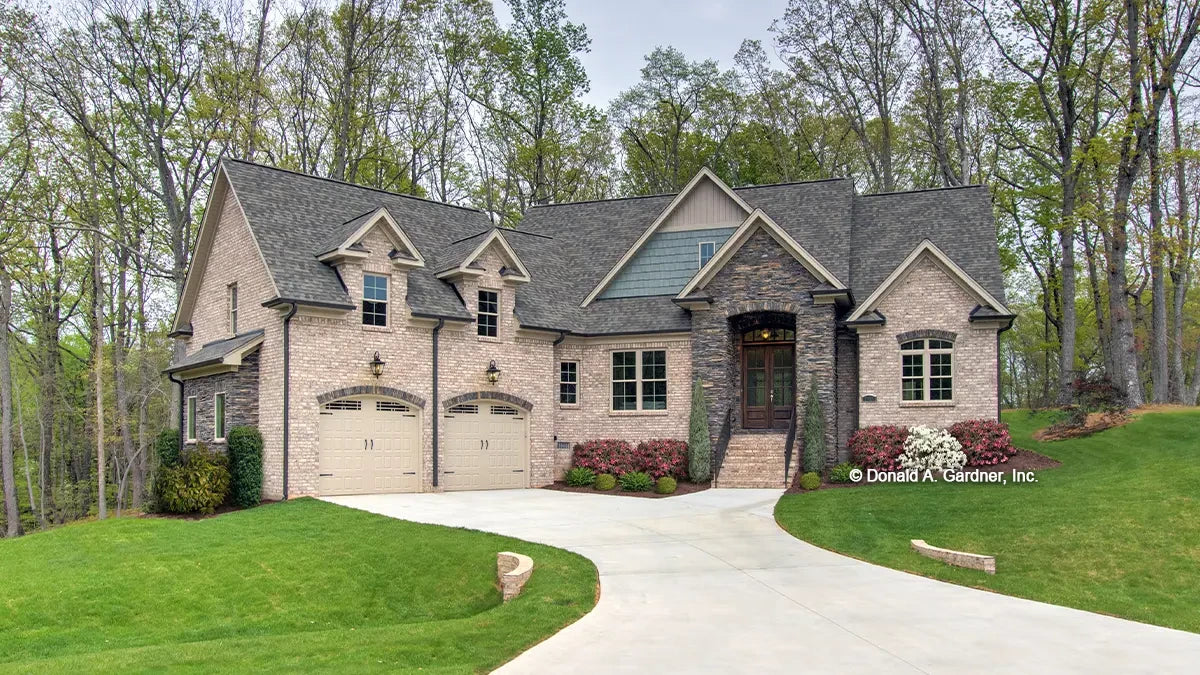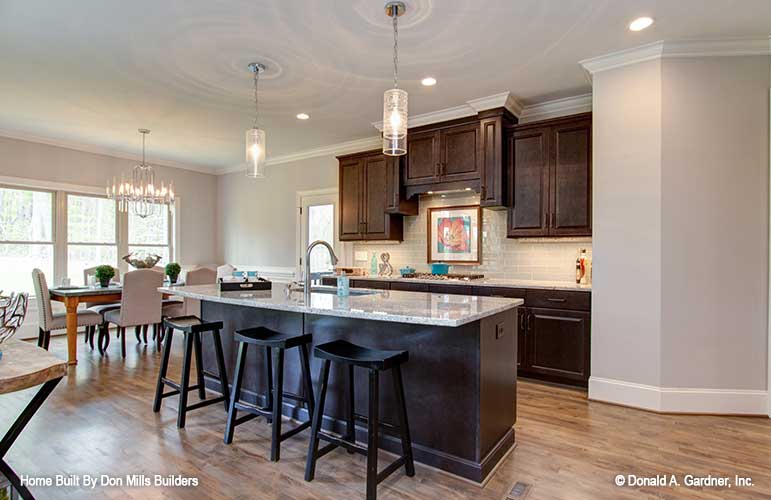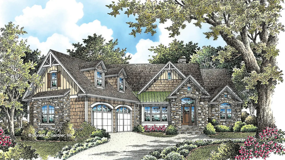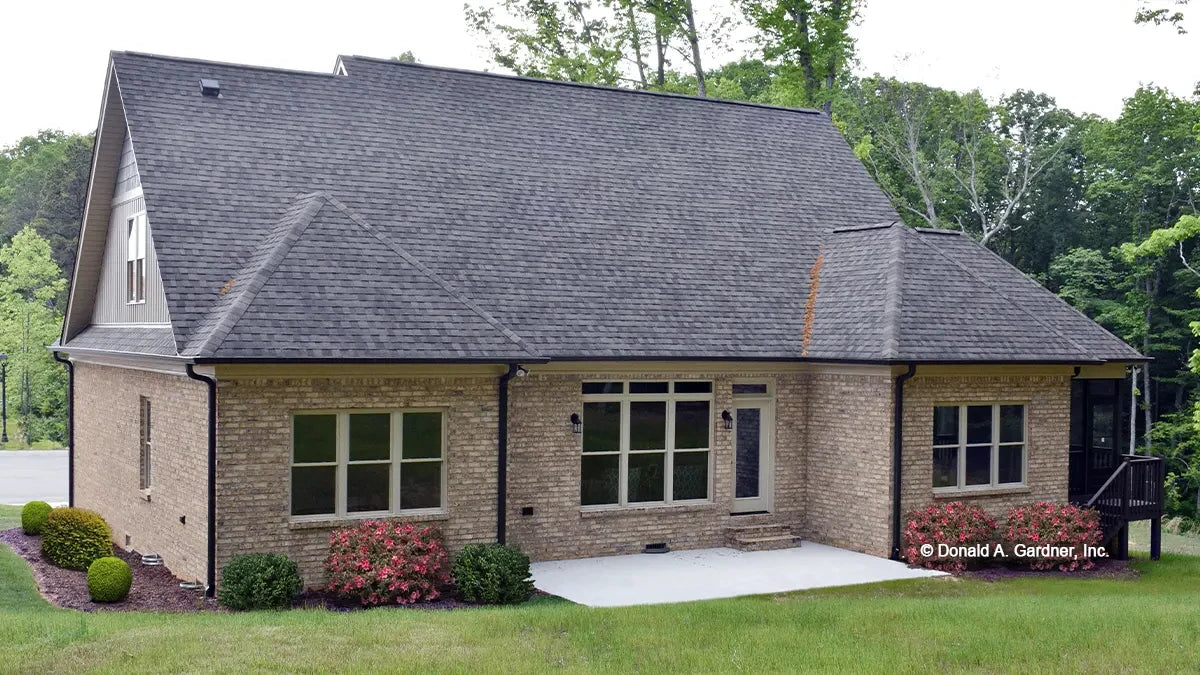 An angled floor plan allows this design to take advantage of rear views. The dining room, master bedroom, and screened porch are bayed, adding architectural interest, and the rear porch is topped with a cathedral ceiling and skylights. The spacious kitchen is right by the screened porch with summer kitchen, making outdoor entertaining easy. A pantry, coat closet, and utility room lead the way to the garage, while additional bedrooms and a bonus room complete the second floor.