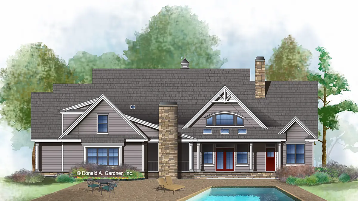 This ranch home design offers a relaxed, low-maintenance exterior with a two-car garage situated at the rear of the floor plan. In this open design, the great room flows into the kitchen and single dining room. A private master suite features dual walk-in closets and vanities, a standing shower, soaking tub, and a sizable sitting room. Two additional bedrooms, each with walk-in closet, share a Jack & Jill bath and a third room serves as a bedroom or study with full bath. An e-space and pantry bring functionality to the design while the utility room conveniently opens to a covered porch. A screened porch with skylights and fireplace allows for year-round outdoor living while a covered porch and patio are available when the weather is kind.