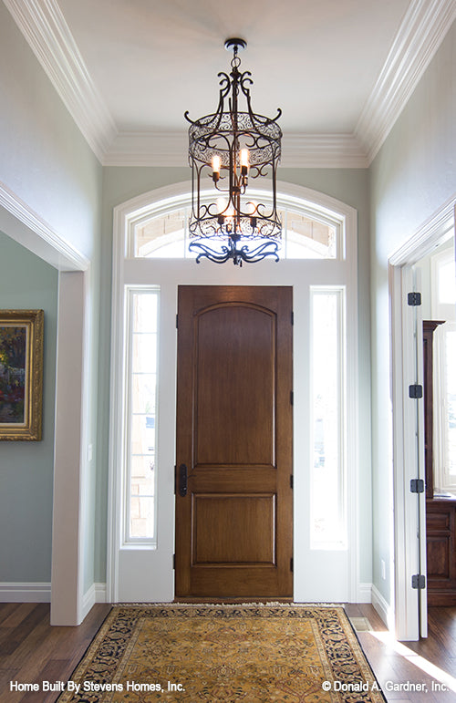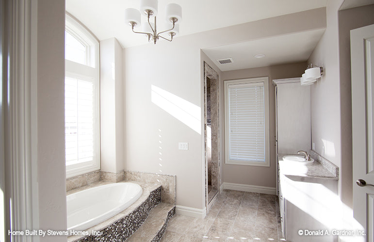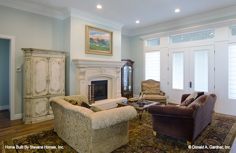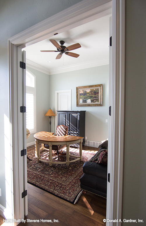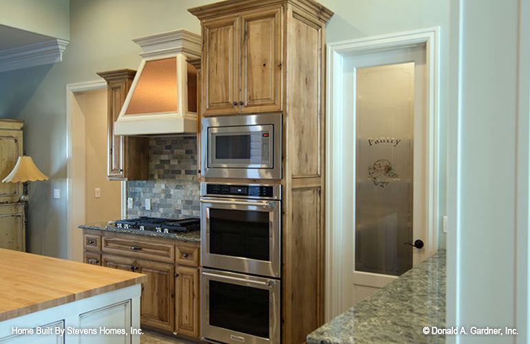 A thoughtful arrangement of public and private spaces results in this family-friendly design with a total of five bedrooms, including the bedroom/study. Special ceiling details and built-in niches display custom style in this Craftsman ranch, which features a large kitchen with prep island and pantry, a three car garage with plenty of storage, and an oversized utility room. The master suite includes huge walk-in closets and a windowed sitting room.