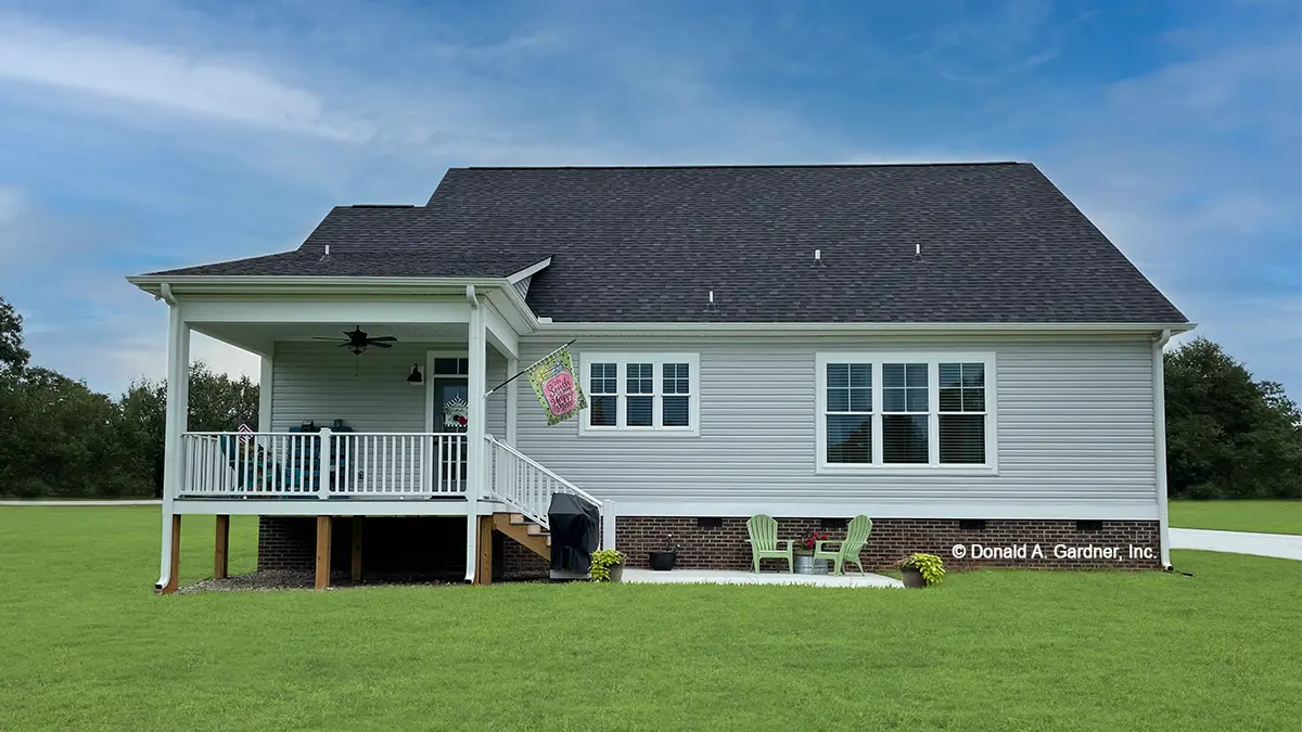 The Rogers is a small modern farmhouse designed for family living. A vaulted ceiling visually expands the great room, and the dining room is spacious and open for gatherings. The drop zone has a built-in seat and enjoys a sun tunnel, and a powder room is available for guests. The kitchen features an island and barn doors open to a pantry and utility room. Just steps away, a door leads to the rear porch and patio. Two bedrooms, each with a walk-in closet, share a bathroom with a dual sink vanity. The master suite is to the opposite side of the floor plan and enjoys two skylights, a massive walk-in closet, and a luxurious bathroom with a freestanding bathtub, walk-in shower, and a dual sink vanity. Find storage space in the garage and a bonus room above.
