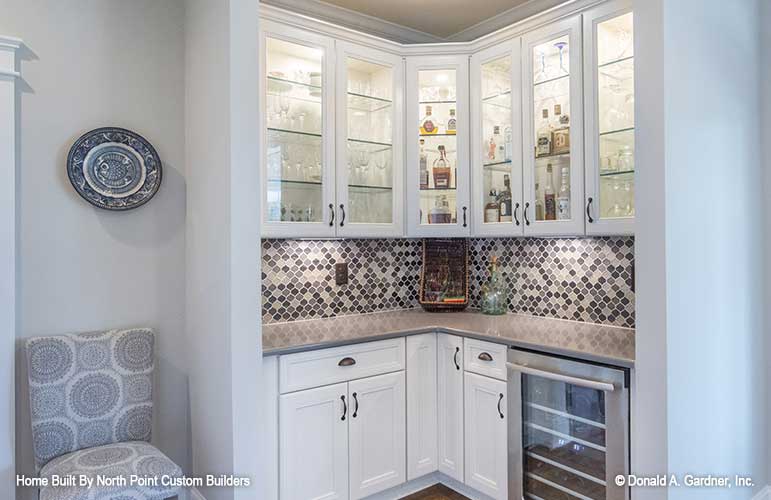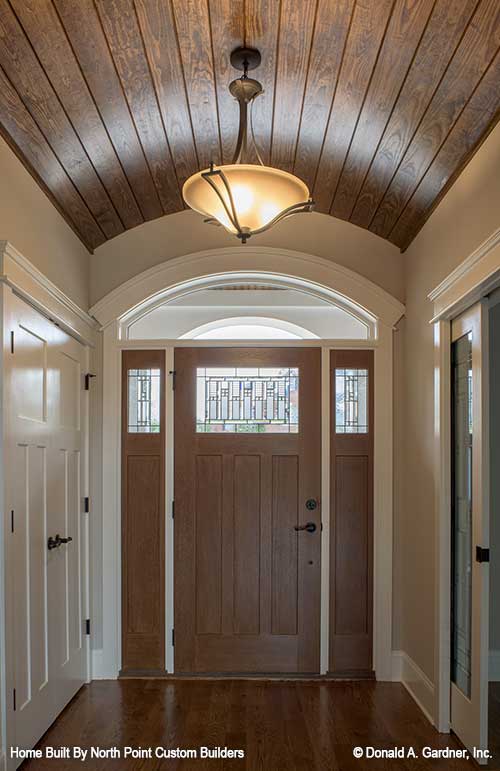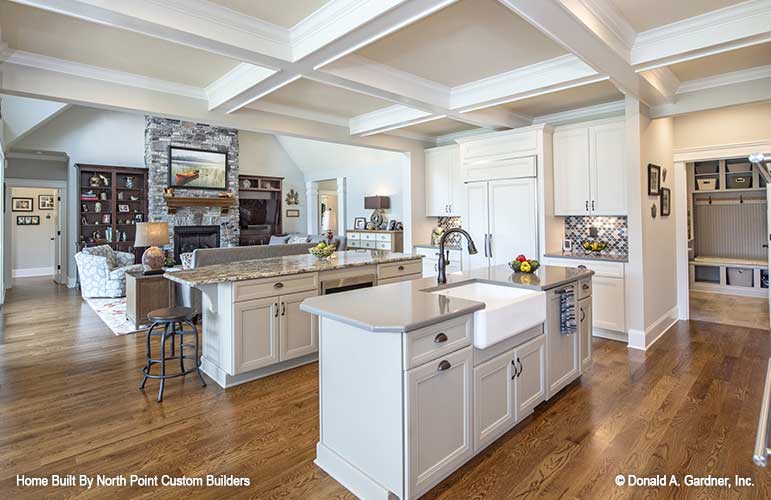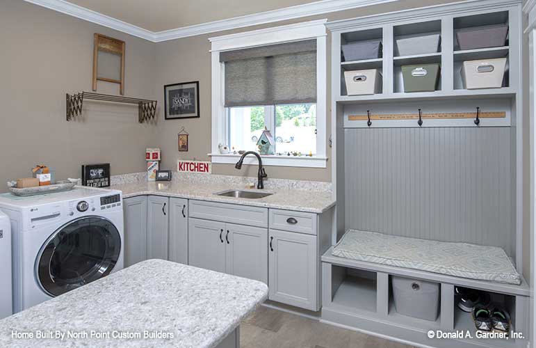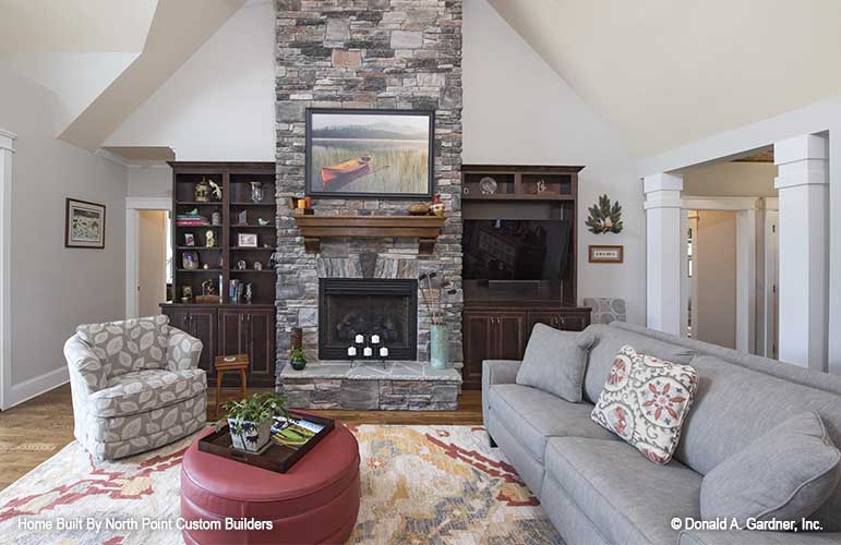 This richly dimensional exterior brimming with special details enhances any streetscape, and distinguishes this family-friendly ranch house plan. Incredibly open common areas are complemented by practical specialized spaces, like the library, e-space, pantry, and huge utility room. Each bedroom has an adjacent bathroom, and the master suite enjoys privacy and access to the covered porch. Columns, decorative ceilings, built-in shelves, and a screen porch with fireplace add custom elements to this remarkable Craftsman house plan.