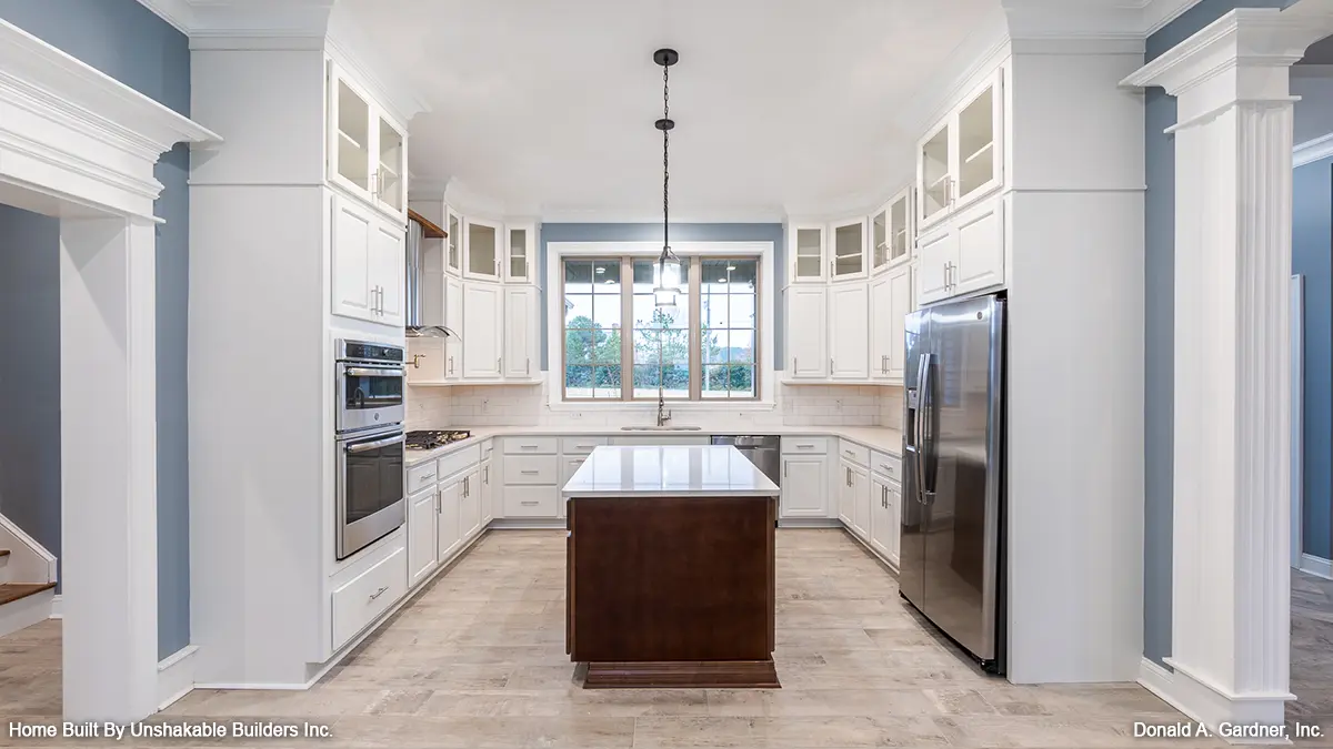 This Craftsman exterior is highlighted with multiple front-facing gables and accented by arched windows. Front porch arches mirror the windows and columns provide definition. The front porch leads into a spacious foyer with coat closet and nearby, the study offers a full closet and adjacent bathroom. The two-story great room welcomes rear views and a fireplace and built-ins are instantly welcoming. A coffered ceiling tops the dining room and a column creates distinction from the open kitchen. A central island with sink simplifies meal prep and an over-sized walk-in pantry is just steps away. A multi-functional utility room and mudroom, with seating area and storage closet, provide much needed organization for busy households. After gardening or yard work, a side entry porch allows entry directly to the mudroom for easy cleanup. Completing the first floor is an opulent master suite with sitting room, dual walk-in closets, and a luxury bathroom. Rear porches, including a screened porch with fireplace and summer kitchen, bring the joy of indoor entertaining to the outdoors. Two sets of stairs provide access to the second floor.