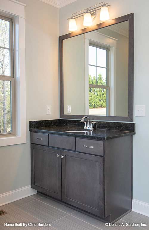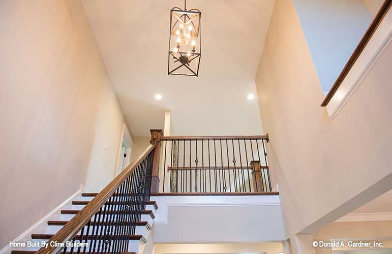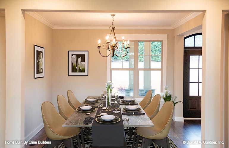 The storybook exterior features a front facing garage that is ideal for narrower lots. The arched garage bays add character to the whimsical exterior. This home enjoys a spacious single dining area while the kitchen is multi-functional with a center cook-top island and bar seating for casual eating and gathering. Two additional bedrooms are found upstairs and are separated by a loft for privacy.