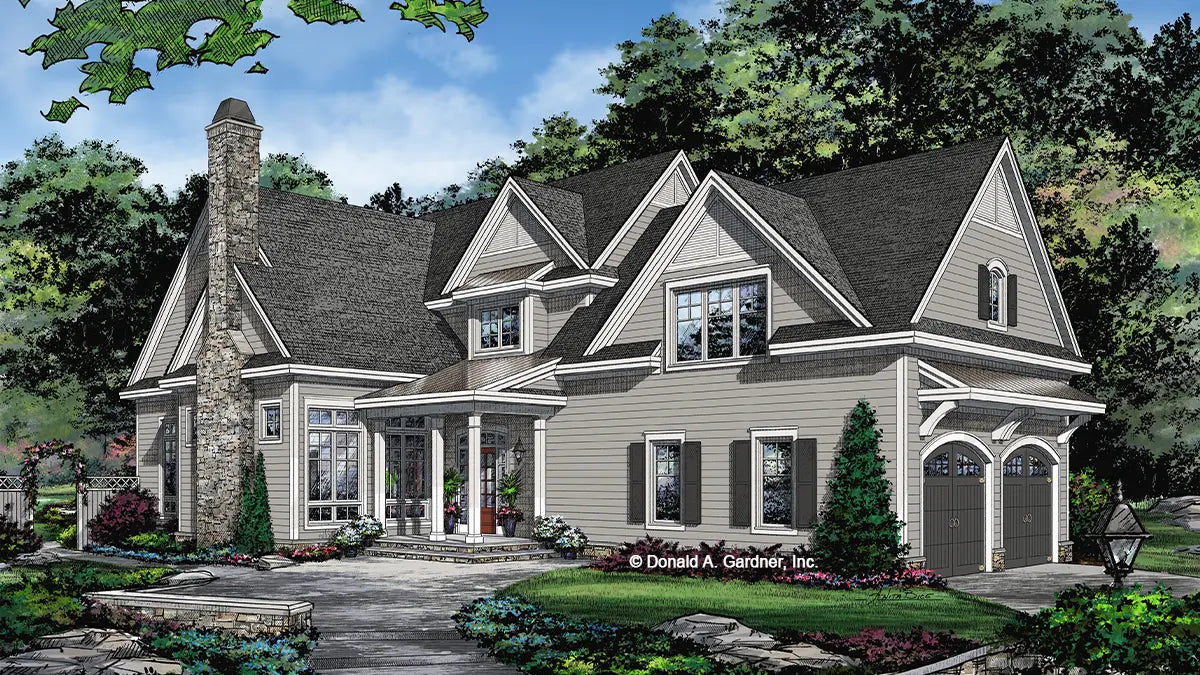 Don't be fooled by the narrow footprint, open living spaces and generous bedrooms await inside. A cathedral ceiling adds visual space to the great room while the dining room gains distinction and style with columns and a tray ceiling. The multi-function kitchen offers ample space for cooking, as well as casual dining at the bar. A walk-in pantry keeps dry goods and small appliances organized and out-of-sight. The master bedroom enjoys dormer windows on each side to bring in natural light. Dual closets, a private master bathroom, and a sitting nook with built-in shelves provide a relaxing retreat for the homeowner. Two additional bedrooms, a full bathroom and a spacious utility room complete the second floor along with a balcony overlooking the great room below.