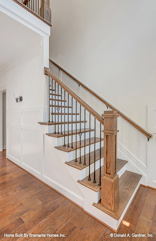 This modest cottage is instantly charming with a stone-and-shake exterior and welcoming front porch. Multiple gables and dormers add dimension to this narrow design. The living spaces are cozy and create a continuous flow between the open great room, island kitchen and dining room. The spacious master suite is downstairs with the utility room while two additional bedrooms and a bonus room are upstairs.