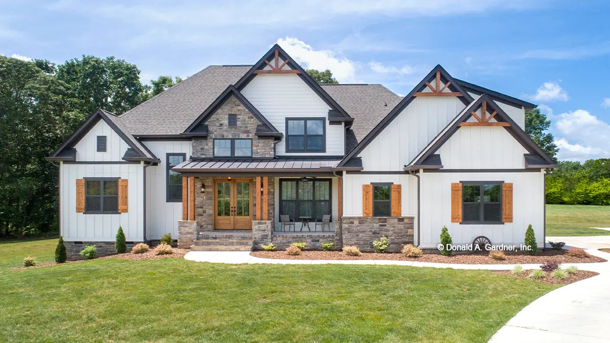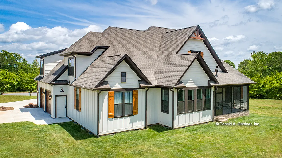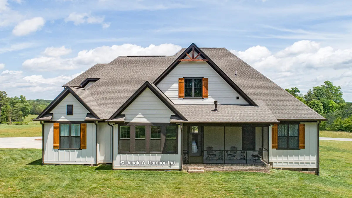This traditional home makes a grand impression with accents of stone, metal, and vertical siding. The foyer opens directly to the dining room and the stunning kitchen island is within sight. A fireplace and coffered ceiling create a cozy environment for the great room and a rear porch and a screened porch with a fireplace take living outdoors. The master suite is a true retreat with an opulent bathroom and a walk-in closet divided for couples or seasonally. The bedroom/study enjoys an adjacent bathroom and the utility room is nearby. Upstairs, two bedrooms have walk-in closets and share a full bathroom. A bonus room is available for entertainment or a future expansion.