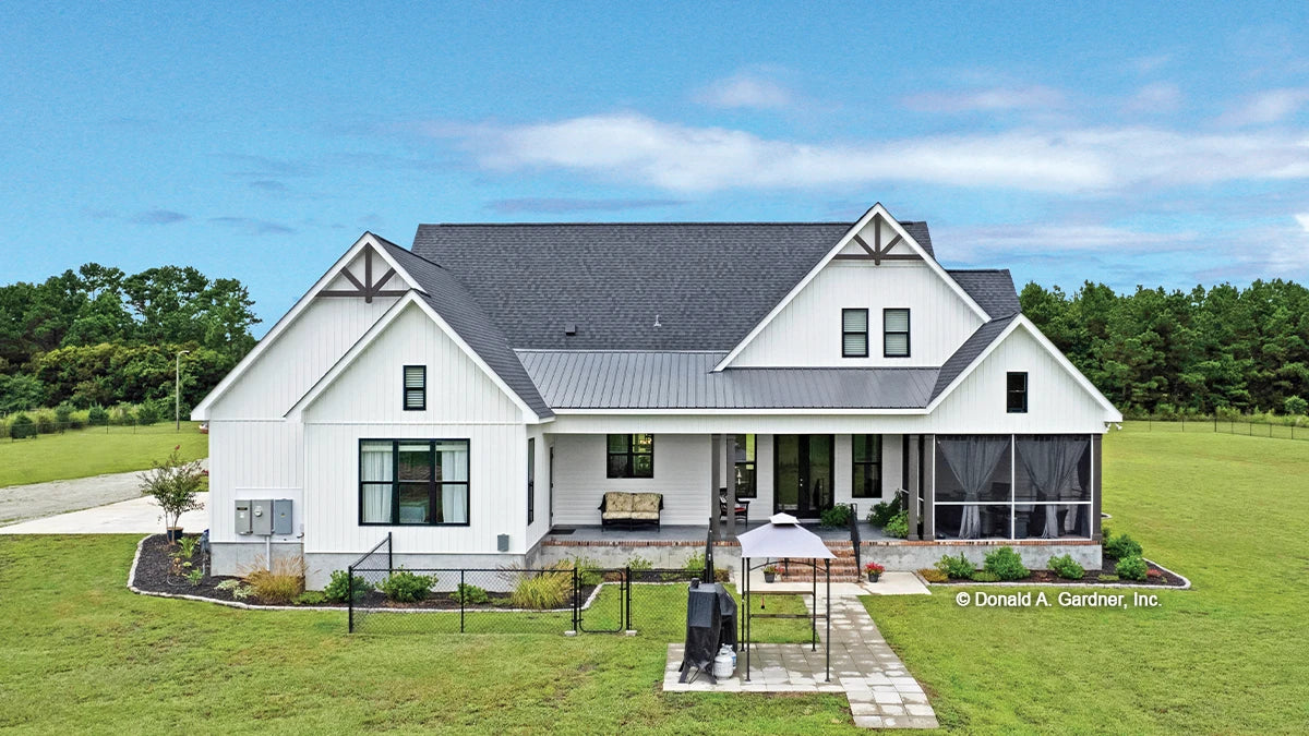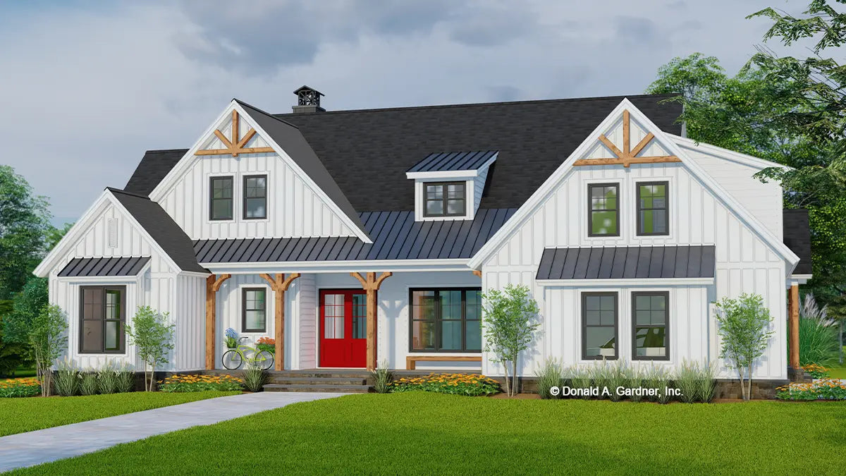 The Sloan is overflowing with modern farmhouse curb-appeal, from the decorative wooden brackets adorning the gables to the metal accent roof. The floor plan is equally impressive with a gourmet island kitchen, spacious dining room and ample outdoor living. Just inside the garage entry, a pantry is available for easy grocery drop-off and the utility room accesses a side porch and features a laundry sink. The master bedroom is a luxury retreat and two additional bedrooms complete the first floor. Upstairs, a bonus room with full bathroom functions as a guest suite or media room.