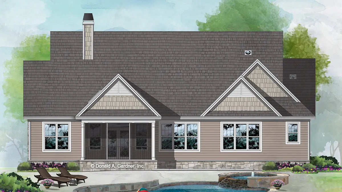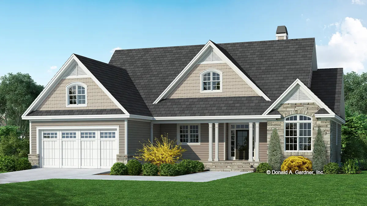 This Craftsman home plan is instantly appealing with arched windows and stone complementing the siding and cedar shake facade. The foyer opens to a grand great room with a cathedral ceiling that extends to the screened porch. The island kitchen enjoys a built-in pantry and a spacious dining room is adjoining for family meals. A cathedral ceiling tops the master bedroom and the suite features a walk-in closet and a thoughtful master bathroom with a dual-sink vanity, walk-in shower, and a sun tunnel. A mud room and utility room are just inside the garage entry and on the opposite side of the floor plan, two additional bedrooms share a full bathroom.