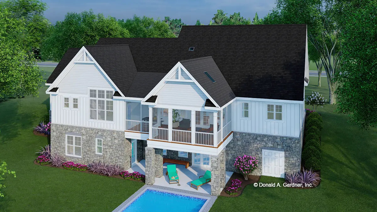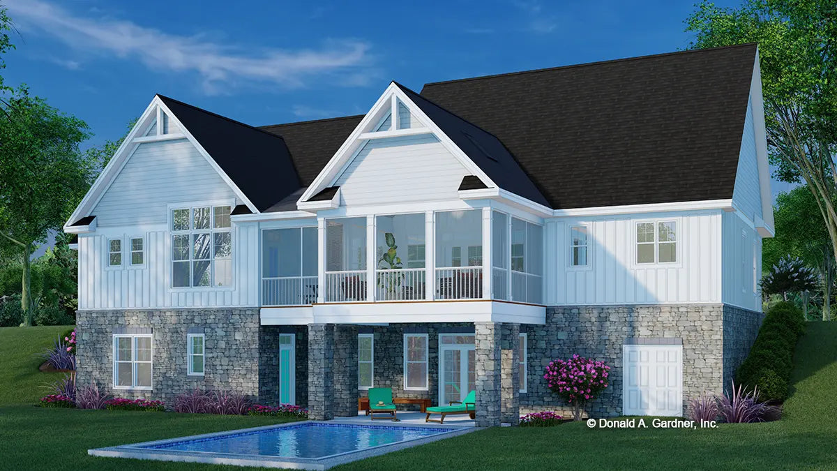 This hillside walkout dream home is overflowing with luxury amenities, from the split, three-car garage to dual master suites on the first floor. The great room and dining are open with a cathedral ceiling overhead. An island and wet bar enhance the kitchen while a pantry and mud room are nearby. Multiple porches and a patio take living outdoors. Downstairs, find two additional bedrooms, a rec room, and a secondary utility room. An optional bonus room and bathroom are upstairs for a guest suite or home gym.