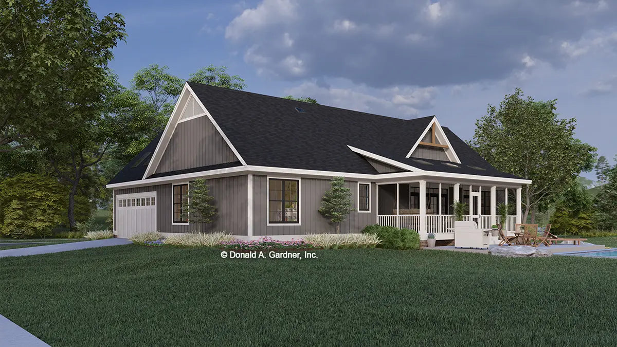 The Mossview Meadow features a stylish board-and-batten facade with decorative gable trusses. Open living awaits inside with an elegant dining room, a vaulted great room with fireplace, and a spacious island kitchen. Enjoy outdoor relaxation on the rear porch topped with a trio of skylights. The master suite offers every luxury with outdoor access, a tray ceiling, dual walk-in closets, and a well-appointed bathroom. A flexible bedroom/office is nearby while two additional bedrooms are across the floor plan. Find storage in the two-car garage, a sun tunnel in the utility room, and an optional bonus room above the garage for additional square footage.