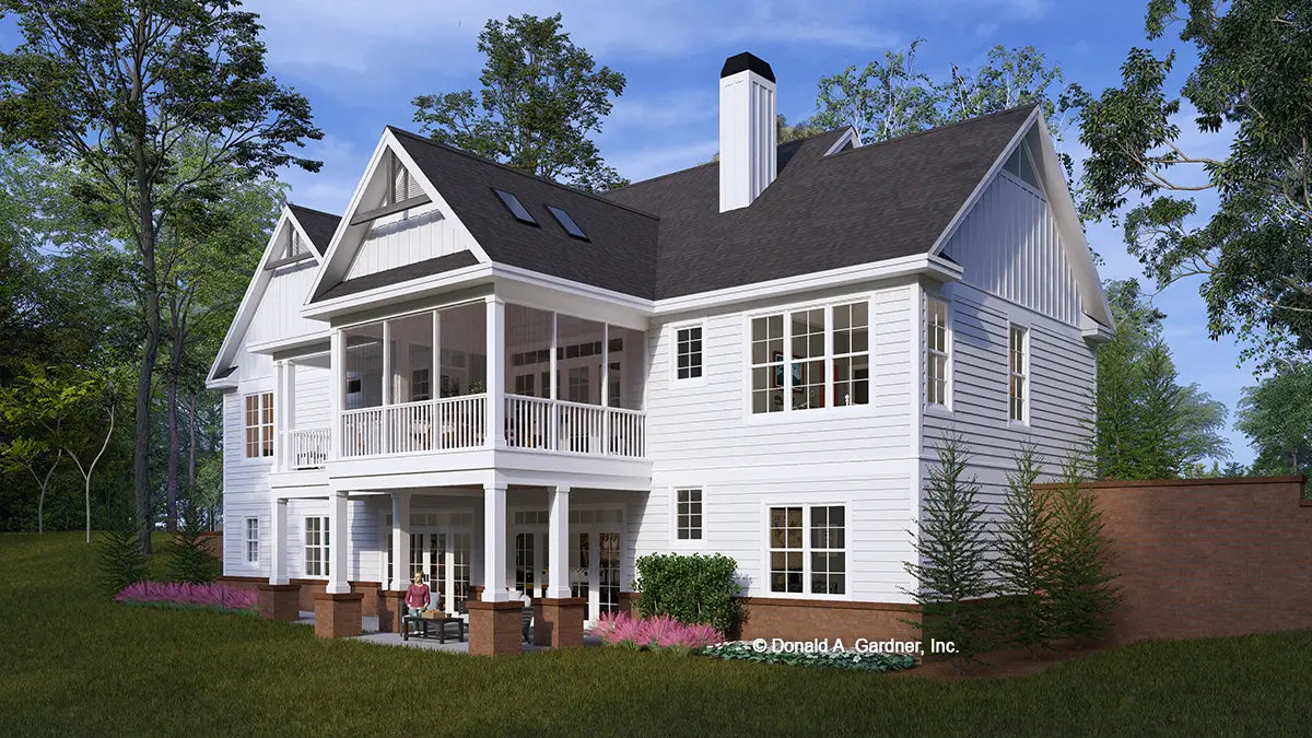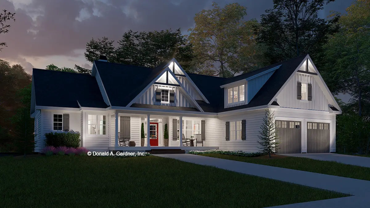 This walkout basement dream home features a modern farmhouse façade with board-and-batten, gable trusses, shutters, and an inviting front porch. Open living awaits inside with a vaulted great room, island kitchen, and spacious dining area. A sensational screened porch with skylights extends living outdoors. The master suite is on the first floor with two additional bedrooms. Downstairs the rec room is flanked by two full bedroom suites. An optional bonus room above the two-car garage offers expansion opportunities.