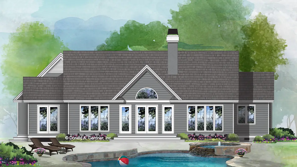 An inviting exterior with pairs of intricately detailed columns flanking a barrel-vaulted entrance give traditional charm to this refreshingly open, yet compact home plan. At the heart of this home is a large great room with cathedral ceiling and an arched window above a sliding glass door, which leads out to an impressive deck with seating and spa area. Elegant columns separate the dining room from the great room and from a large kitchen with island counter breakfast area. This floor plan invites you to retreat to the privacy of a large master suite located at the back of the house. Separate shower, garden tub, walk-in closet, and double lavs provide all the luxury you need.