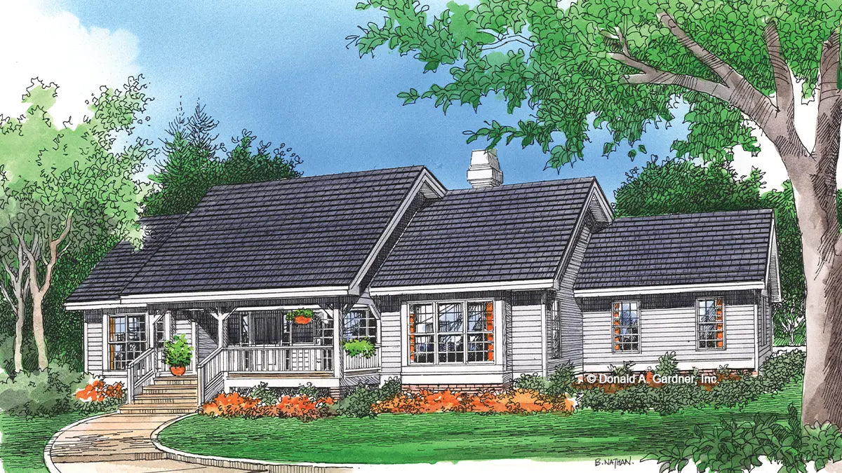 Owners will love the oversized master suite in this efficient ranch plan, featuring a large corner tub flanked by his-and-hers vanities. The great room, dining room and kitchen create one large entertaining space, and two additional bathrooms share a bath at the opposite end of the home. An oversized utility room simplifies laundry tasks.