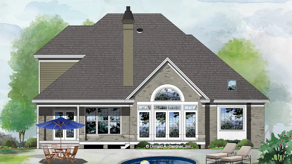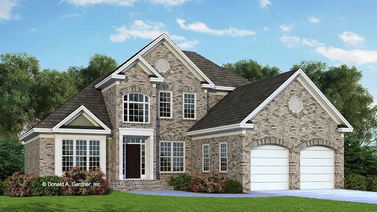 This gabled traditional home features an open floor plan that stands ready to meet the challenges of family living. A first-floor master suite has double walk-in closets, his and her vanities, shower, ventilating skylights over the whirlpool tub, and plenty of privacy for Mom and Dad. Nine-foot ceilings on both floors, a two-level light-filled foyer, and a cathedral ceiling in the great room help this plan live beyond its square footage.