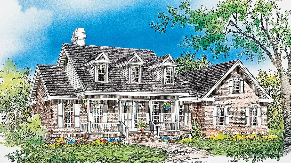 This plan offers the best of both worlds for those torn between traditional and country style. The active family gets all the room it needs in just 1,954 square feet thanks to an open floor plan and covered porches in this three-bedroom country home. Stairs to the skylit bonus room are conveniently located near the kitchen and master suite. Growing families will appreciate the extra half bath, too. Cathedral ceilings add volume to the master suite which is located in the rear for privacy. Its well-appointed skylit bath features a whirlpool tub, separate shower, and dual vanities.
