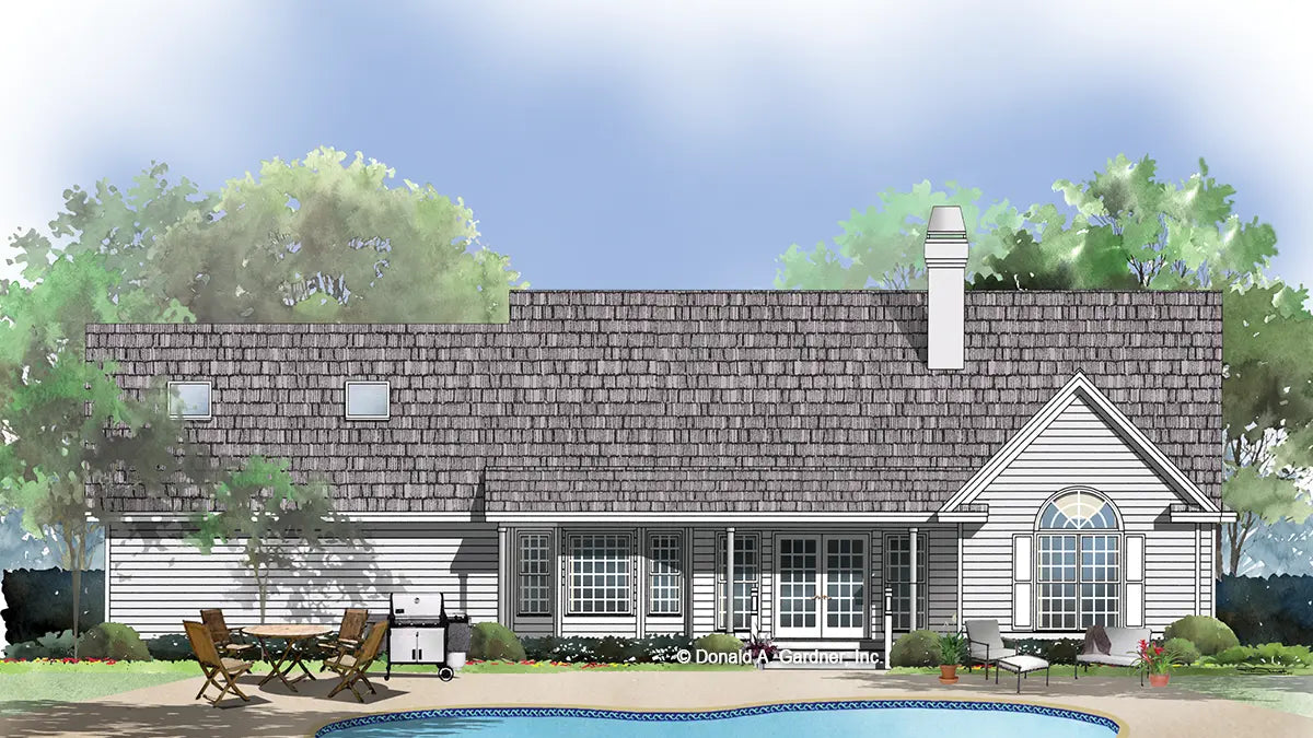We didn't waste an inch of space in this three-bedroom home and still fit every amenity into just 1,575 square feet. The great room with fireplace and built-in cabinets shares a cathedral ceiling with the smart angled kitchen, but a separate dining room allows for more formal entertaining. The master bedroom is a private retreat with its own cathedral ceiling, walk-in closet, and well-appointed bath. Covered porches front and rear encourage relaxation, and the skylit bonus room makes a great rec room or office.