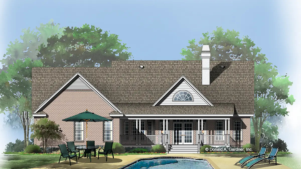 We gave this gabled brick charmer extra elbow room by opening the dining room to the foyer and the great room to the contemporary kitchen. Cathedral and nine foot ceilings create vertical space, and front and back porches extend the living and entertaining areas. The master suite is a private oasis all to itself. A cathedral ceiling adds volume, while operable skylights over the whirlpool tub add an airy, romantic splash to the bath. A large bonus room over the garage offers opportunities for expansion.