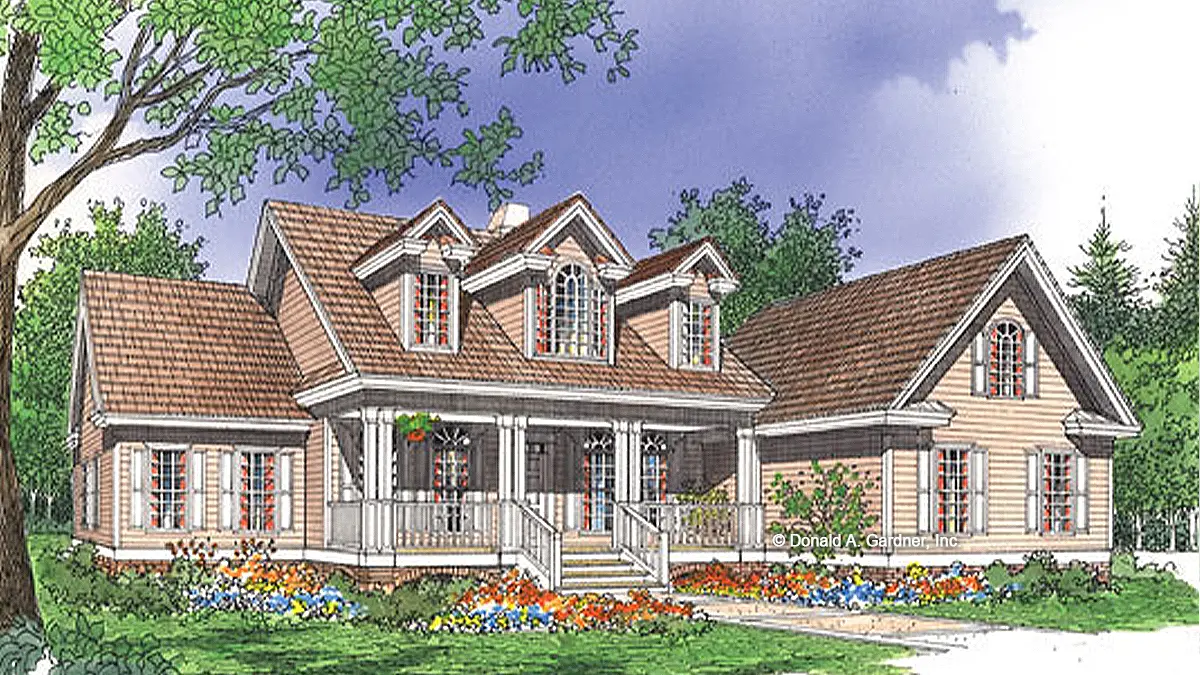 This country classic offers a casually elegant exterior with arched windows, dormers, and a charming front porch accented by double columns. A second-floor balcony with loft connects the upstairs bedrooms and overlooks the spacious great room with fireplace, cathedral ceiling, and rear screened porch. The large island kitchen with snack bar is centralized to serve the dining room, breakfast bay, and utility area. The first-floor master suite boasts a walk-in closet, double vanity, shower, and sumptuous garden tub nestled in its own bay.