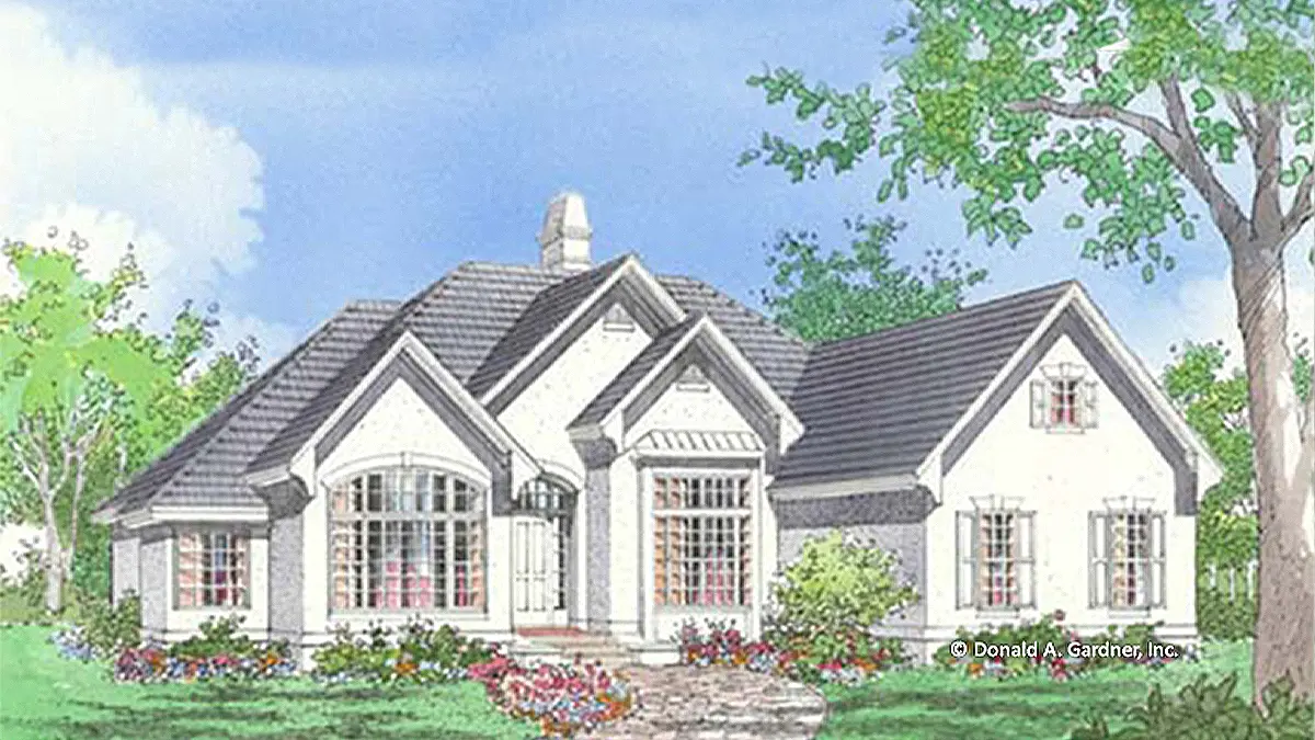 Although this home boasts an Old-World flavor, the timely floor plan easily supports a busy family's contemporary lifestyle. A generous center island kitchen promises quick meal preparation, while a great room with twelve-foot ceilings and a formal dining room, framed with columns, help homeowners entertain with ease. A vaulted ceiling in the flexible living room/study and nine-foot ceilings elsewhere create extra volume. Split bedrooms make the master suite a private oasis. Two walk-in closets and a tray ceiling in the bedroom and a private bath with a luxurious corner tub complement the suite.