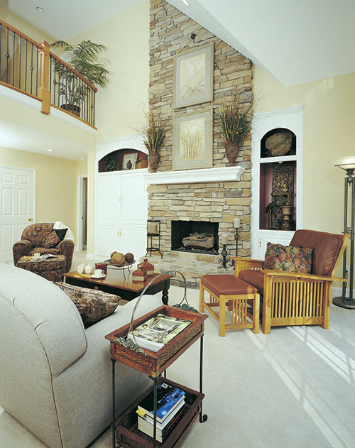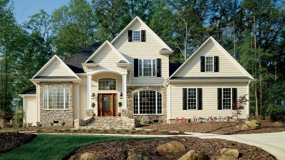 Stone, stucco, and refined styling add to the Old-World charm of this home designed to meet the needs of today's lifestyle. An open foyer accentuates a graceful stair and leads to the dining room, which is expanded by an arched picture window and tray ceiling. The great room features built-in cabinets and a wall of windows for extra drama. The first-floor master suite enjoys extra height from a tray ceiling, while a garden tub is the focal point of the master bath. Upstairs, two bedrooms share a large full bath, and a skylit bonus room and attic storage are easily accessed from the second floor.