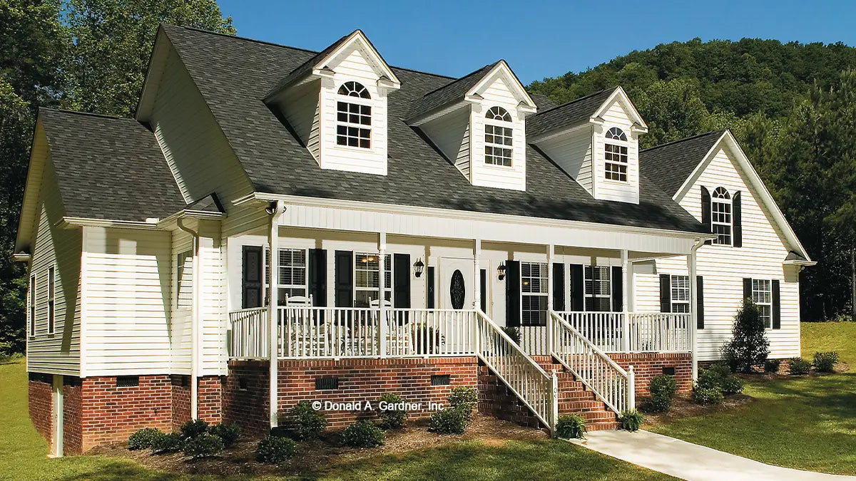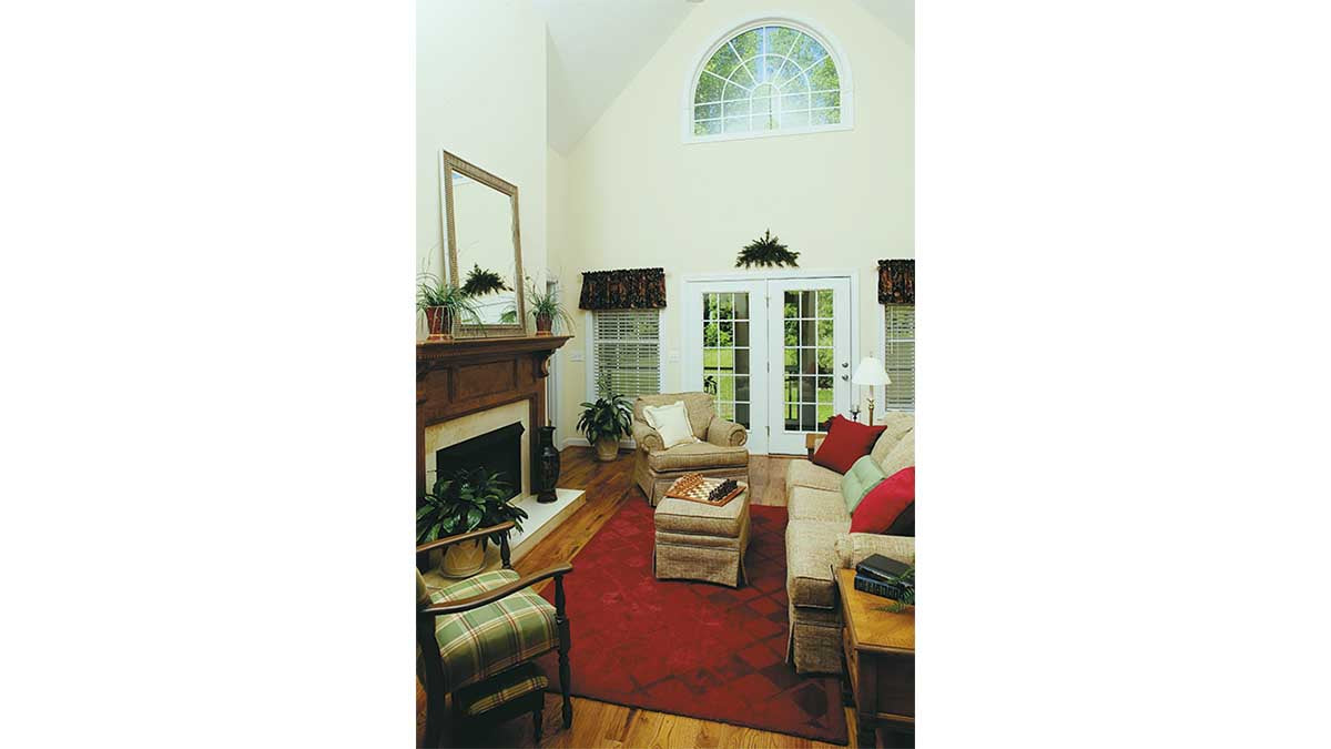 Not only does this gorgeous country home live bigger than its 1864 square feet, but it also lives easier. The space flows easily from the sunlit foyer into a generous great room with cathedral ceiling, while interior accent columns define the open kitchen and breakfast bay. The master bedroom, located off the great room, features a tray ceiling and back porch access, and the well-appointed master bath is separated from the bedroom by closets. A new design twist puts two more bedrooms just steps away from the bonus room, creating a great children's wing.