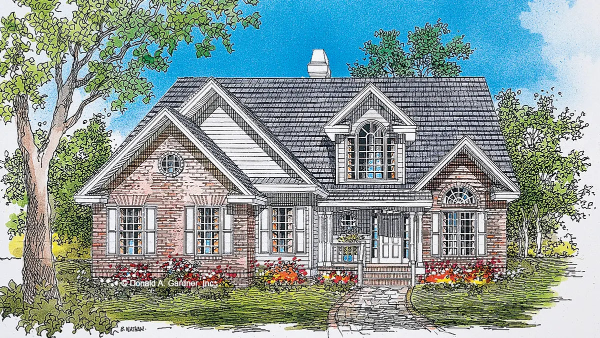 The Eastover creates a sense of volume and spaciousness from cathedral, vaulted, and nine foot ceilings throughout the first floor of this two-story classic. Built-in bookshelves flanking a cozy fireplace and interior columns add elegance to the great room, while a cathedral ceiling with a palladian window in a gabled dormer add volume and style. The private master get-away has all the extras, including a bath with garden tub, picture window, double bowl vanity, enclosed toilet, and walk-in closet. Upstairs, two bedrooms share a roomy bath with a cathedral ceiling. Storage abounds with linen closets, storage closets, and attic storage. A skylit bonus room is easily entered from the second floor hall and accesses the bath for extra convenience.