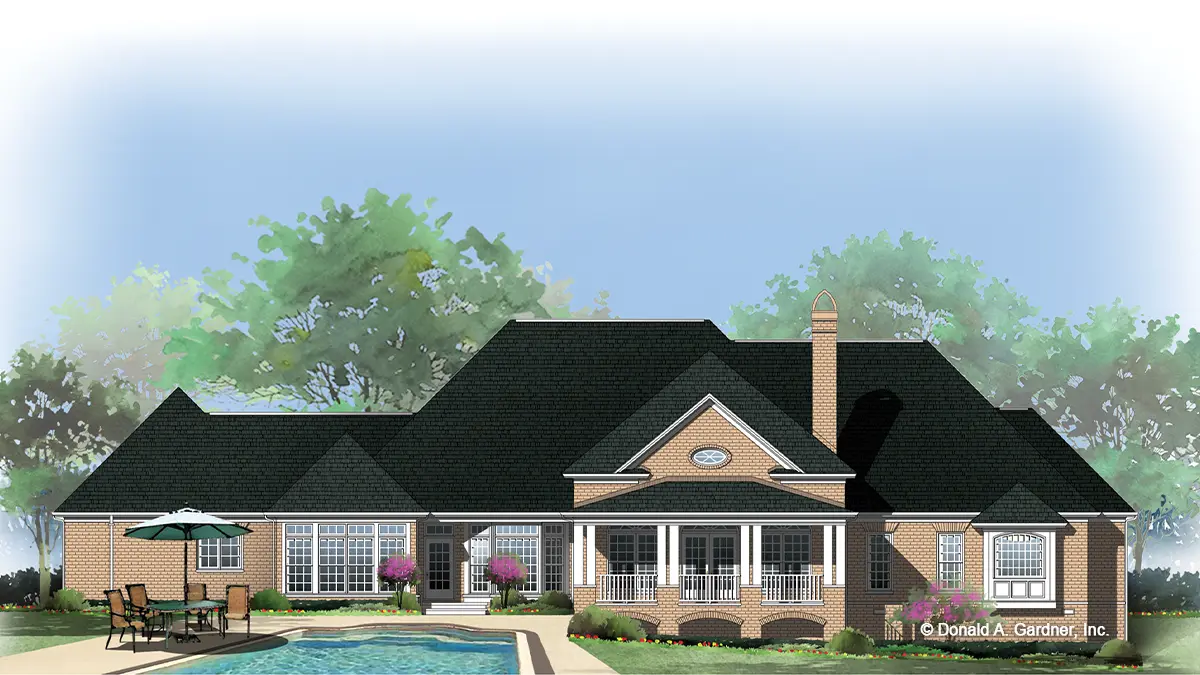 Always in style, brick, gables, and a Traditional hip roof combine with an arched entry and beautiful, arched windows for a truly elegant home. The interior offers an abundance of luxury with dramatic spaces, tray ceilings, built-ins, and a lovely picture window with arched top in the dining room. Custom details abound. Note the wet bar, large, walk-in pantry, oversized laundry room with sink and cupboards, and three car garage. A large walk-up attic and a partial basement create added space for storage. His and her baths highlight the master suite, and each has its own walk-in closet. Two family bedrooms share a well-equipped bath, while a fourth bedroom makes a great guest room with private bath.