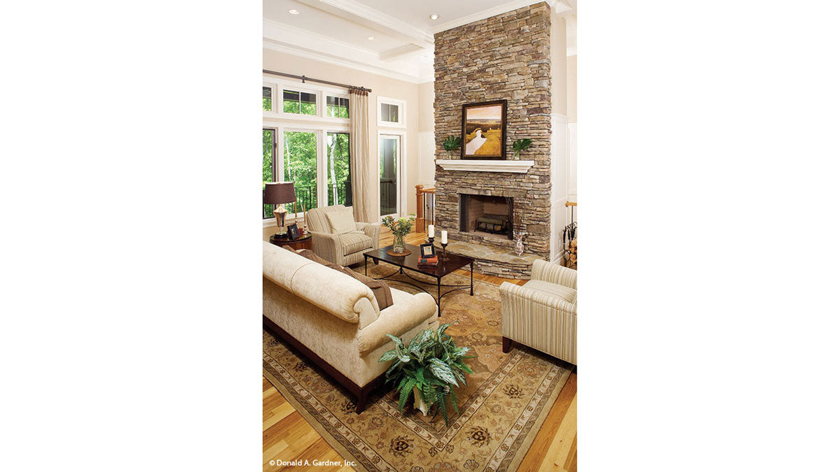 Overflowing with details, this walkout basement home plan features all of the niceties that enhance family life. Ceiling treatments crown every living space on the first floor, and bay windows hug the screen porch, dining room and master bedroom. The lower level features two full bathrooms for each bedroom, making it the perfect home plan retreat for overnight visitors or older children.