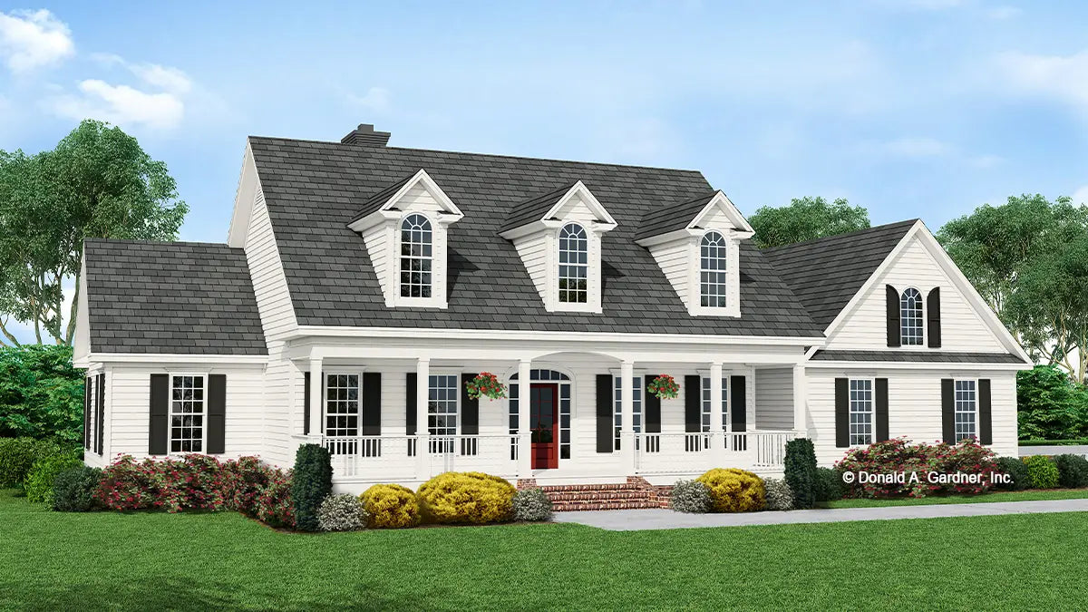 This farmhouse plan's wide front porch says welcome home, and inside, its comfortable design encourages relaxation. A center dormer lights the foyer, as columns punctuate the entry to the dining room and great room. The spacious kitchen has an angled countertop and is open to the breakfast bay. A roomy utility area is nearby. Tray ceilings add elegance to the dining room and master bedroom. A second master suite is located opposite and features an optional arrangement for wheelchair accessibility. Two additional bedrooms share a third full bath with linen closet.
