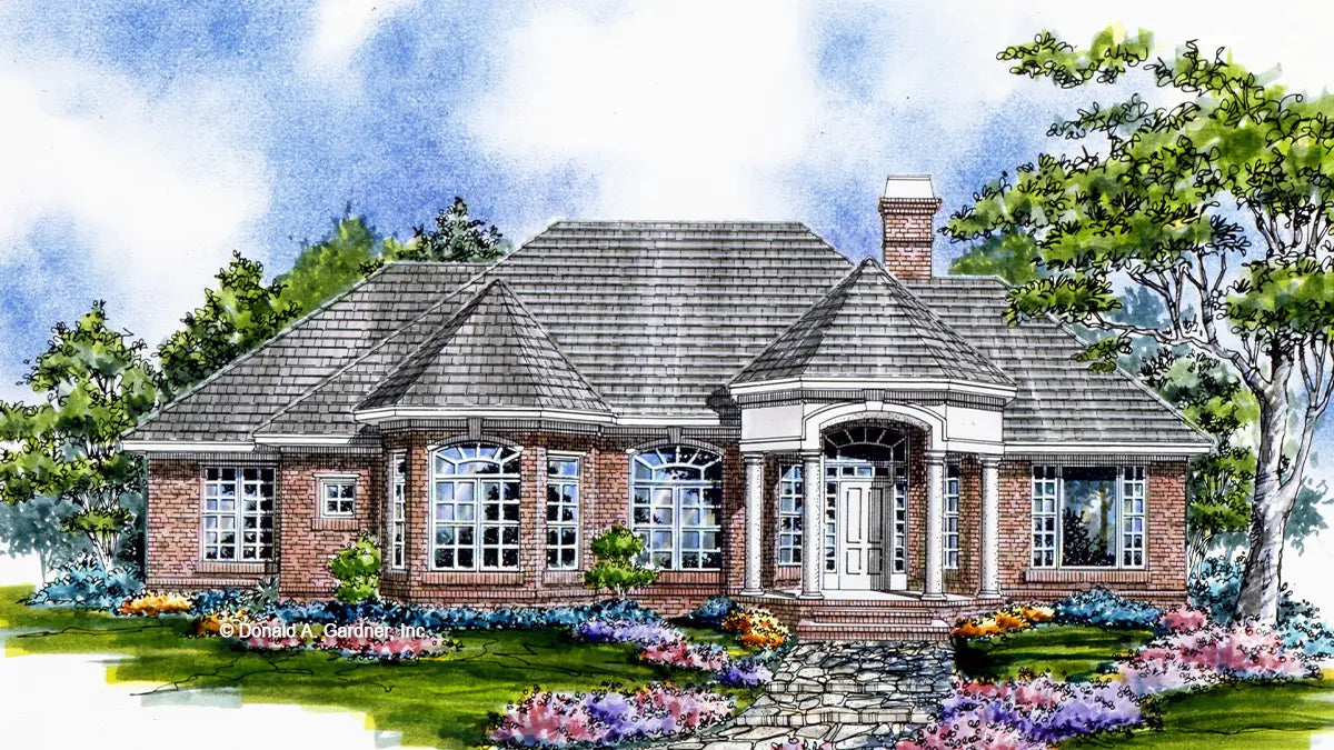 This lovely traditional home incorporates some not-so-traditional design aspects, including angled rooms and an octagonal shaped breakfast room and porches. Nine-foot ceilings prevail except where they are higher, and tray ceilings grace the master bedroom and breakfast room. Columns lend definition to the formal dining room, which is open to the spacious great room with fireplace and built-in shelves. The kitchen features a convenient pass-thru to the great room and is adjacent to a delightfully sunny breakfast room with generous pantry. The master suite is given privacy with this home's split bedroom design. The master bath has his and her vanities and a roomy walk-in closet. Two more bedrooms share a bath-and-a-half, and each feature ample closet space.