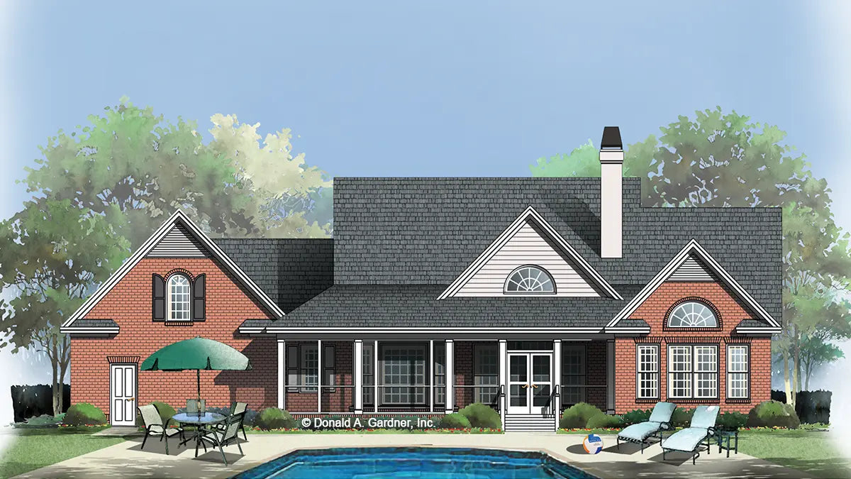 This is an illustration of the front of brick house plan 703 The Orchard Park