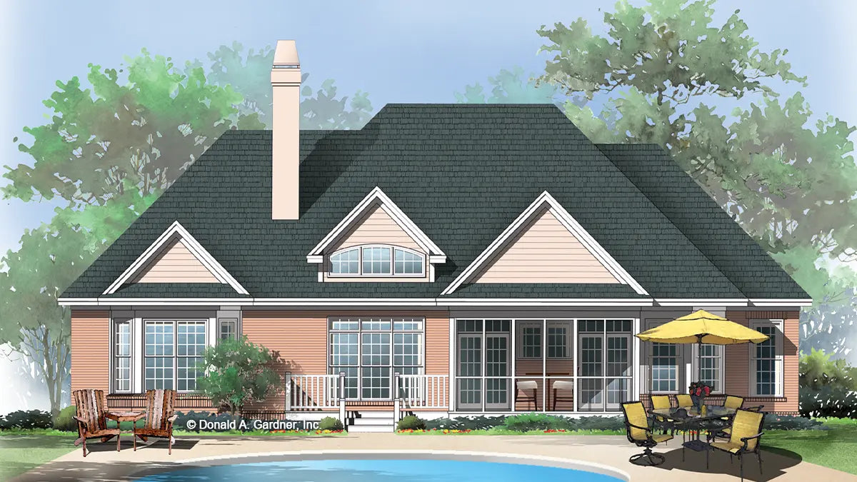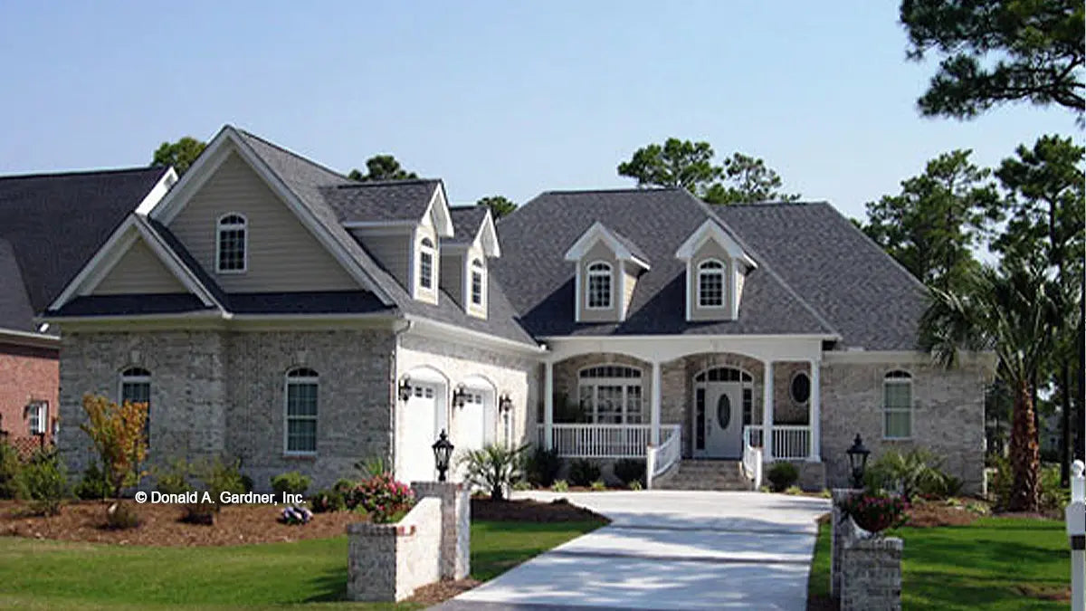 With a brick and siding exterior, hip roof, and a stately arched and columned entry, this traditional home radiates style and elegance. Anything but traditional on the inside, this home features an innovative floor plan with angled rooms for added interest. A cathedral ceiling enhances the great room where a rear clerestory dormer draws in natural light and built-ins flank the fireplace. A tray ceiling and columns add definition to the dining room, while the kitchen features a step saving shape for efficient meal prep. A breezy screened porch is accessed from the great room, breakfast room, and kitchen by way of a pass-thru window. The master suite pampers with a sunny bay window, dual walk-in closets, and an indulgent bath. Two additional bedrooms are located near access to the generous bonus room.