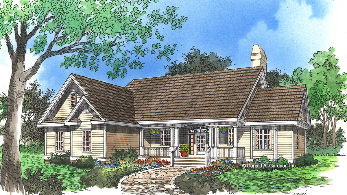 An efficient design allows this modest three bedroom home surprising spaciousness for its 1,476 square feet. Common living areas are open for family togetherness, while the master suite maintains parental privacy from the secondary bedrooms. The foyer features a generous coat closet and introduces a wonderful great room with fireplace, built-in cabinets, and a space enhancing cathedral ceiling. A tray ceiling, columns, and numerous windows distinguish the adjacent dining room. The kitchen boasts a practical layout with a pantry, breakfast bar, and plenty of room for two cooks. The secluded master suite features a private bath with walk-in closet. Two family bedrooms share a hall bath and are convenient to the laundry area, an oversized linen closet, and bonus room access.